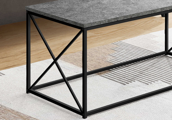 COFFEE TABLE - 40"L / GREY STONE-LOOK / BLACK METAL