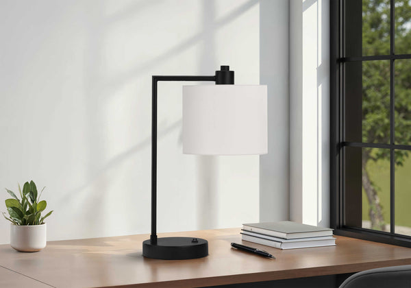 LIGHTING - 19"H TABLE LAMP BLACK METAL / IVORY SHADE /USB