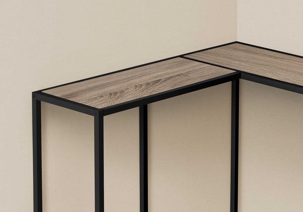 ACCENT TABLE - 36"L / DARK TAUPE / BLACK CORNER CONSOLE