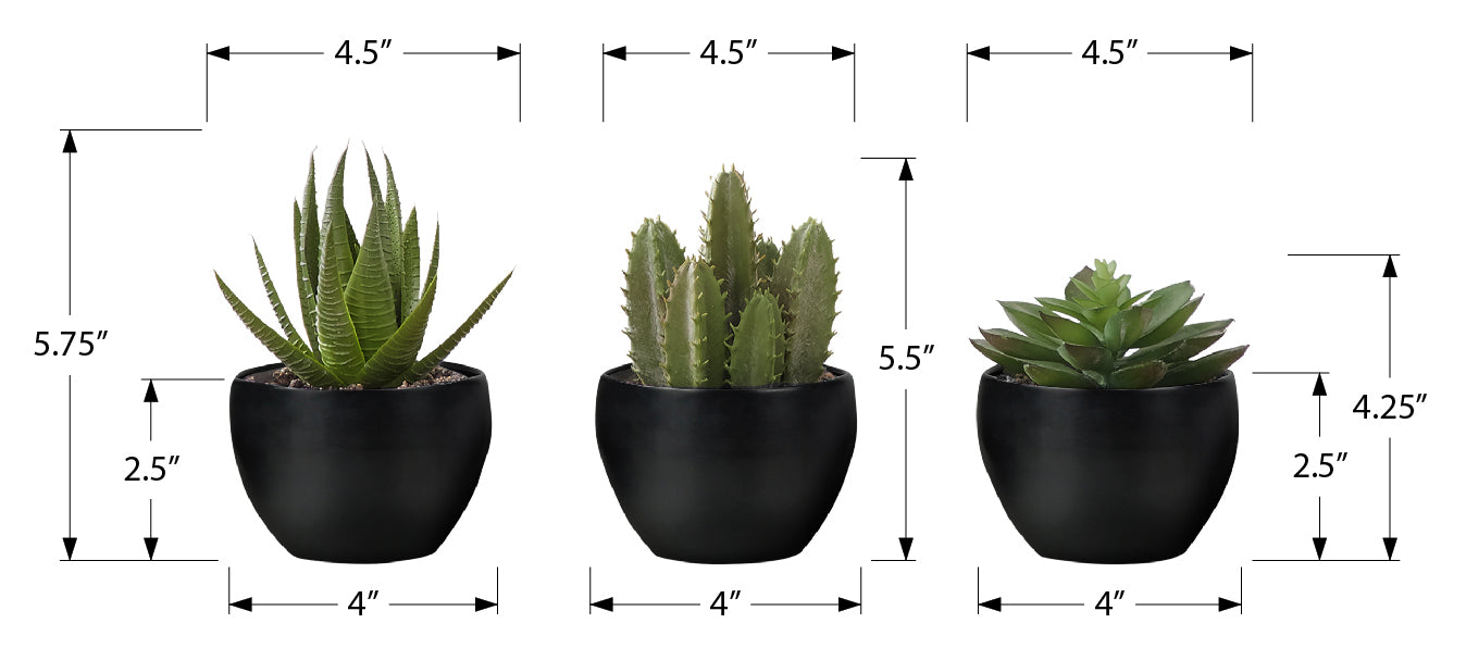 Add a touch of nature to your home or office with this set of 3 artificial succulent plants standing up to 6" tall. This sweet trio of faux green plants offer a no maintenance way to add some vibrancy to a room without the work....
