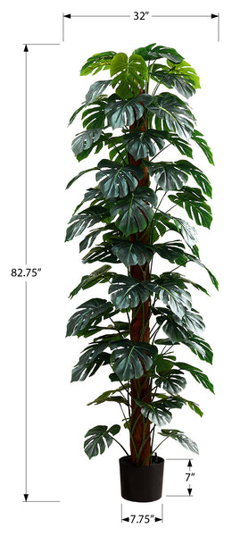 Add some tropical flare to your home decor with this statement making, 83" tall artificial Monstera tree. The 51 realistic looking green leaves made with real touch technology, branches out from a unique trunk base with faux bark details that...