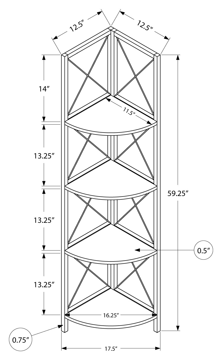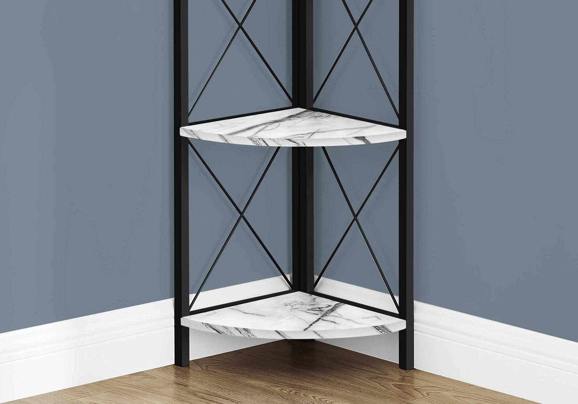 BOOKCASE - 60"H / WHITE MARBLE / BLACK METAL CORNER