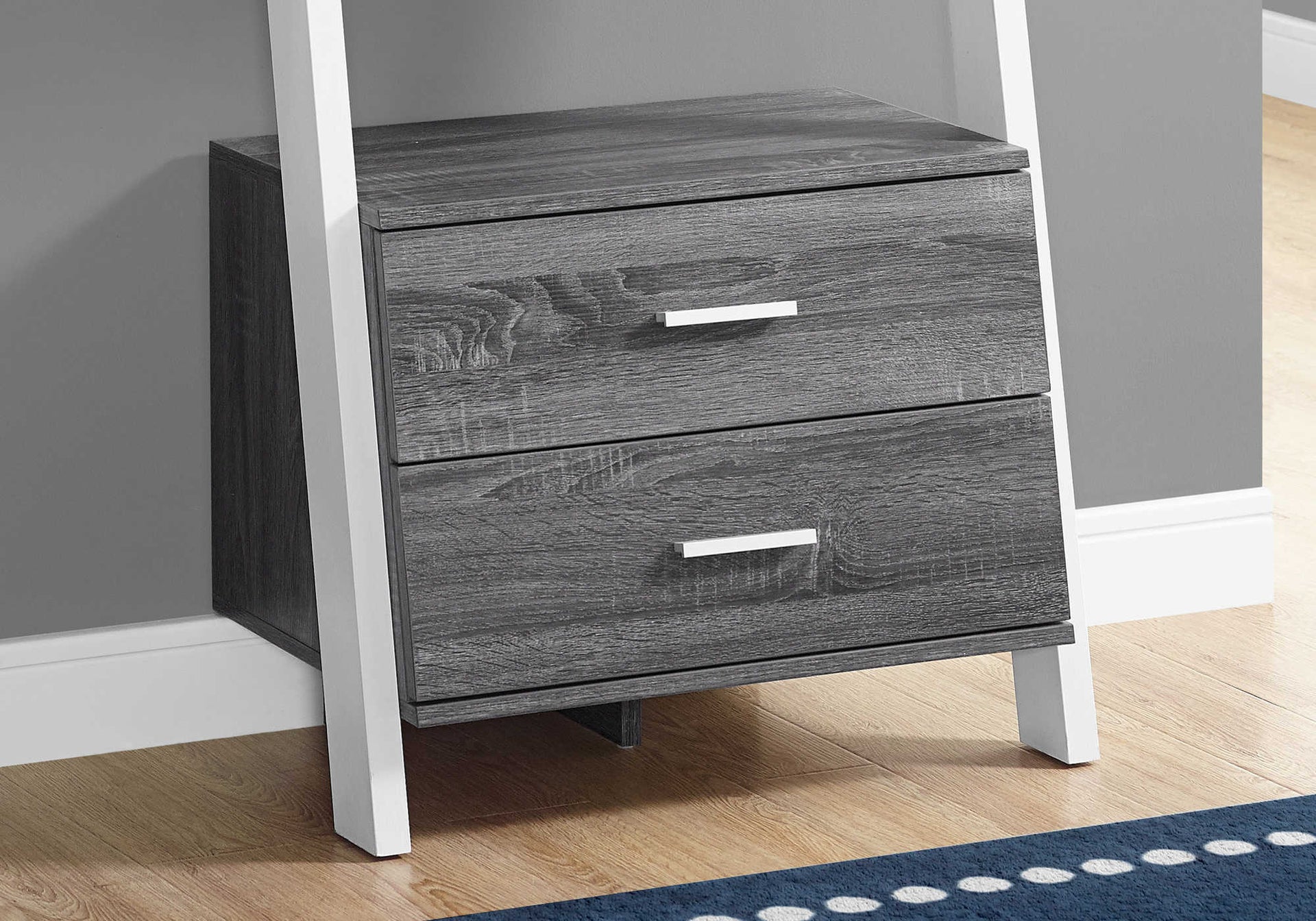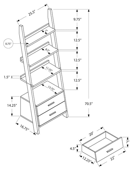 BOOKCASE - 69"H / GREY-WHITE LADDER WITH 2 STORAGE DRAWER
