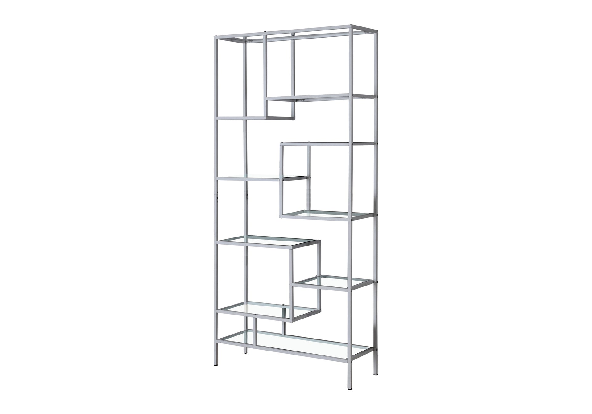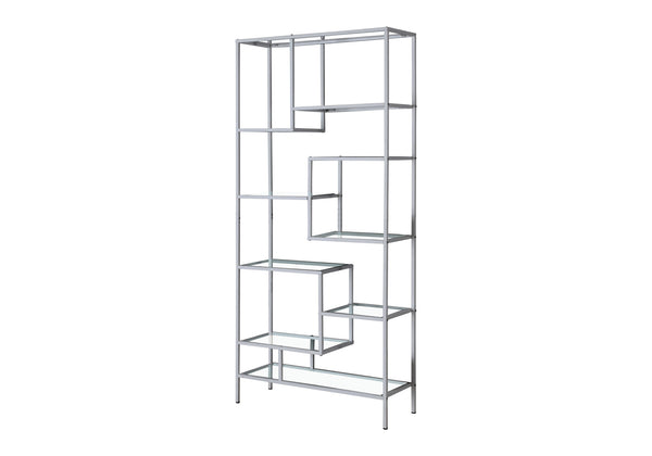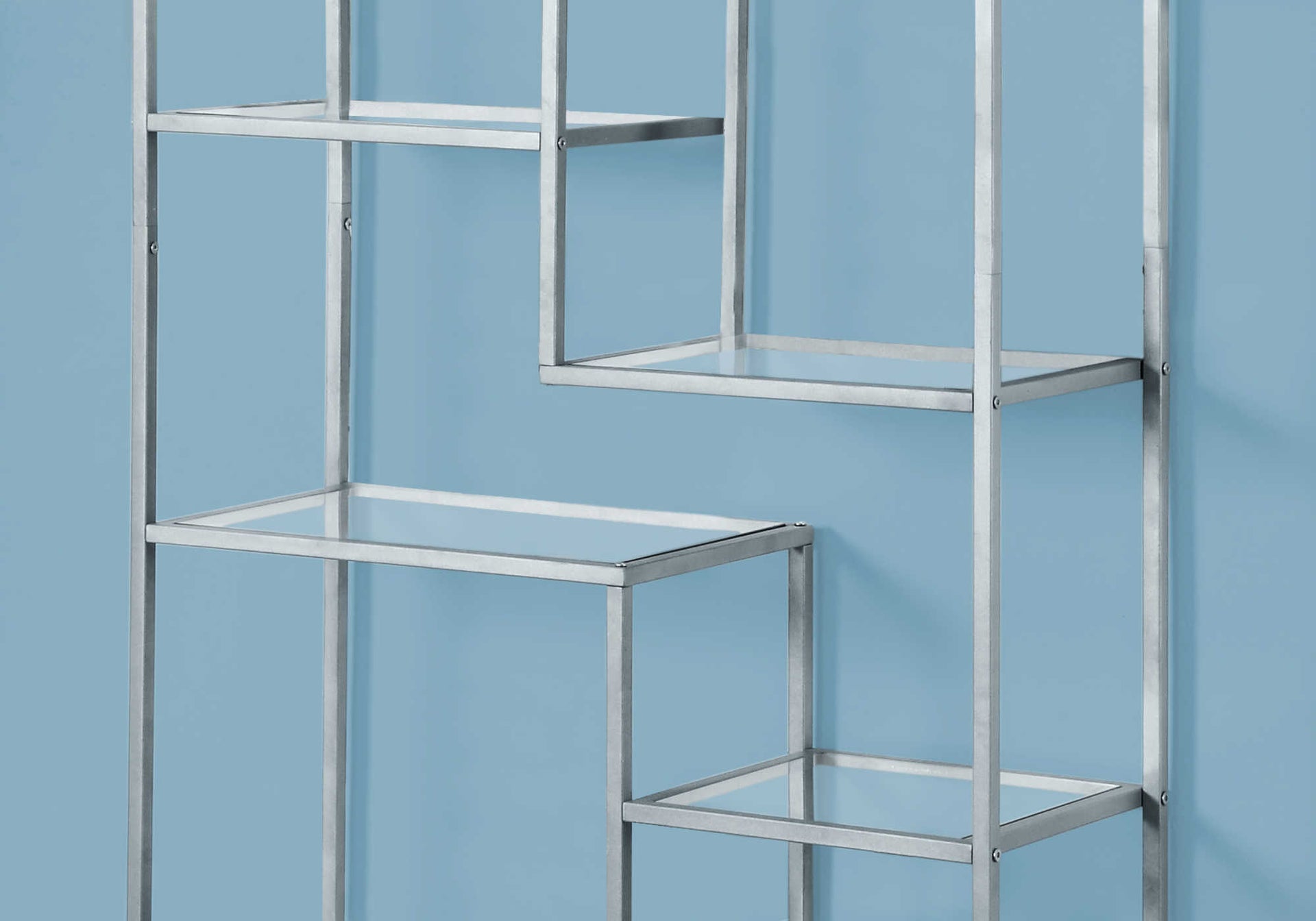 BOOKCASE - 72"H / SILVER METAL WITH TEMPERED GLASS