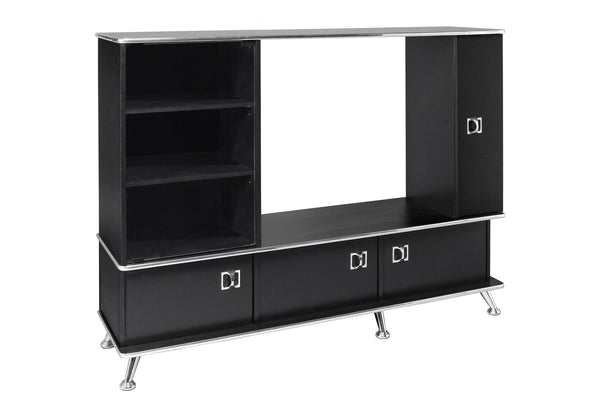 Modern meets retro! Here for you to make a statement in your living room, this entertainment unit can be used as an accent piece or a complete TV stand and more. With 2 adjustable side shelves, a roomy open middle shelf and 3 bottom cabinets,...