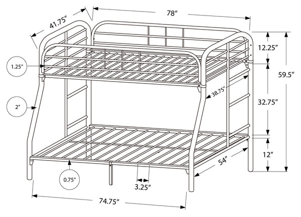 BUNK BED - TWIN / FULL SIZE / SILVER METAL