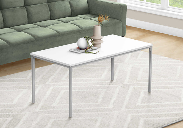 COFFEE TABLE - 40"L / WHITE / SILVER METAL