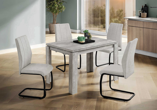 Transform the look of your dining space with this contemporary 5-piece grey and black dining set. This dining set includes a 40" long rectangular table, three chairs, and a bench that accommodates up to 4 people making it perfect for...