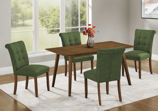 This contemporary style five piece dining set includes a sleek espresso marble-look rectangular table top with bronze metal tube legs, and a decorative metal apron that will bring a touch of style to your home. The 4 complimentary armless chairs,...
