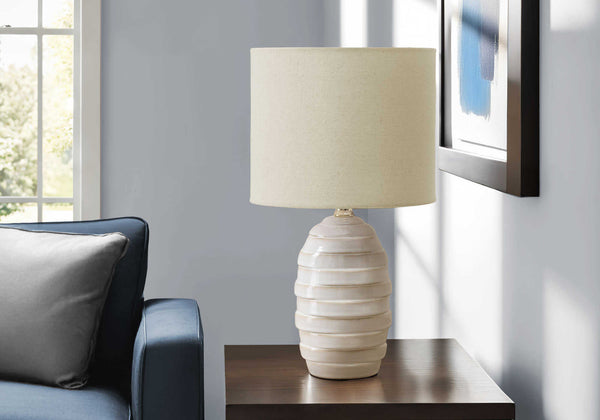 LIGHTING - 17"H TABLE LAMP IVORY CERAMIC / BEIGE SHADE