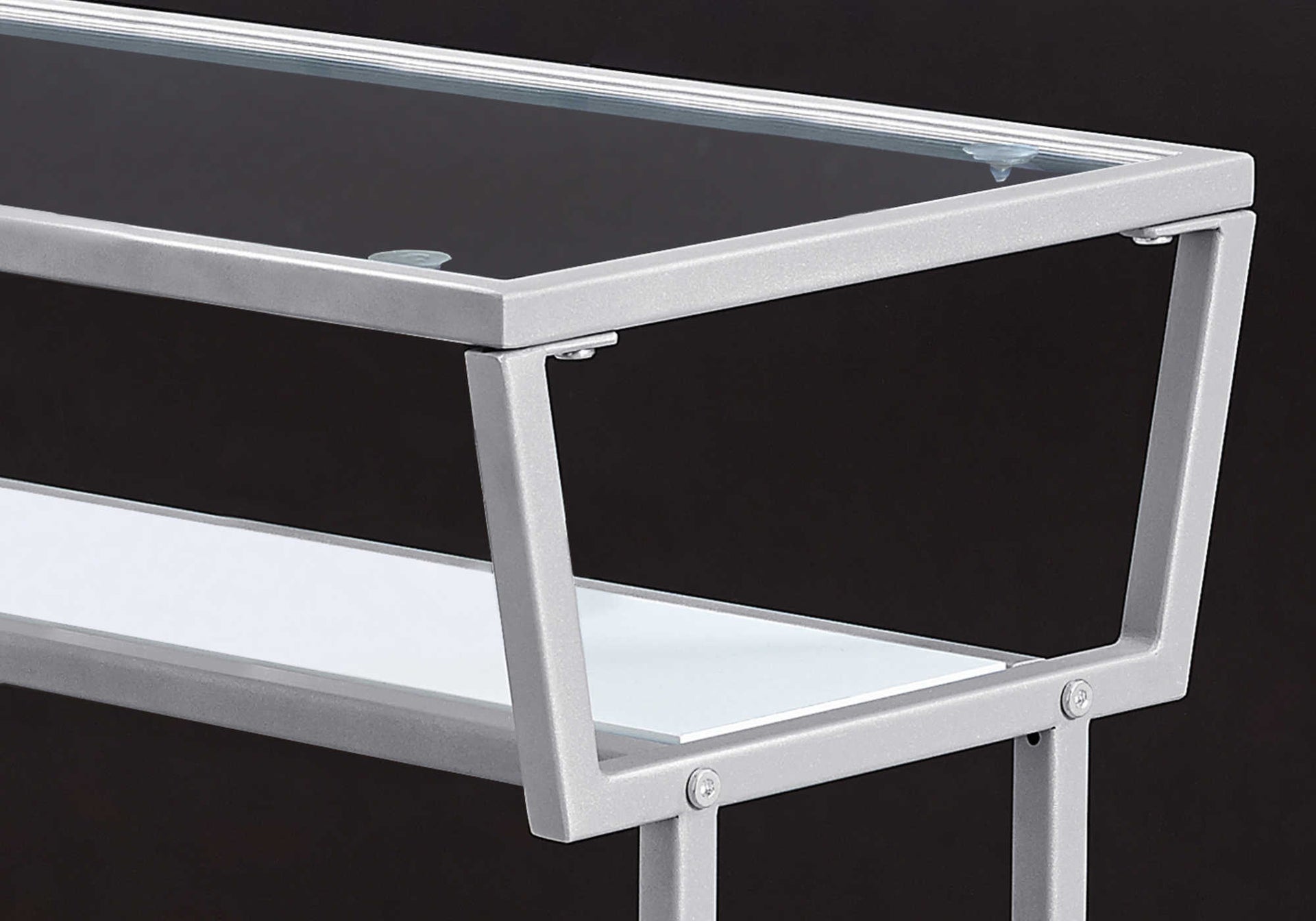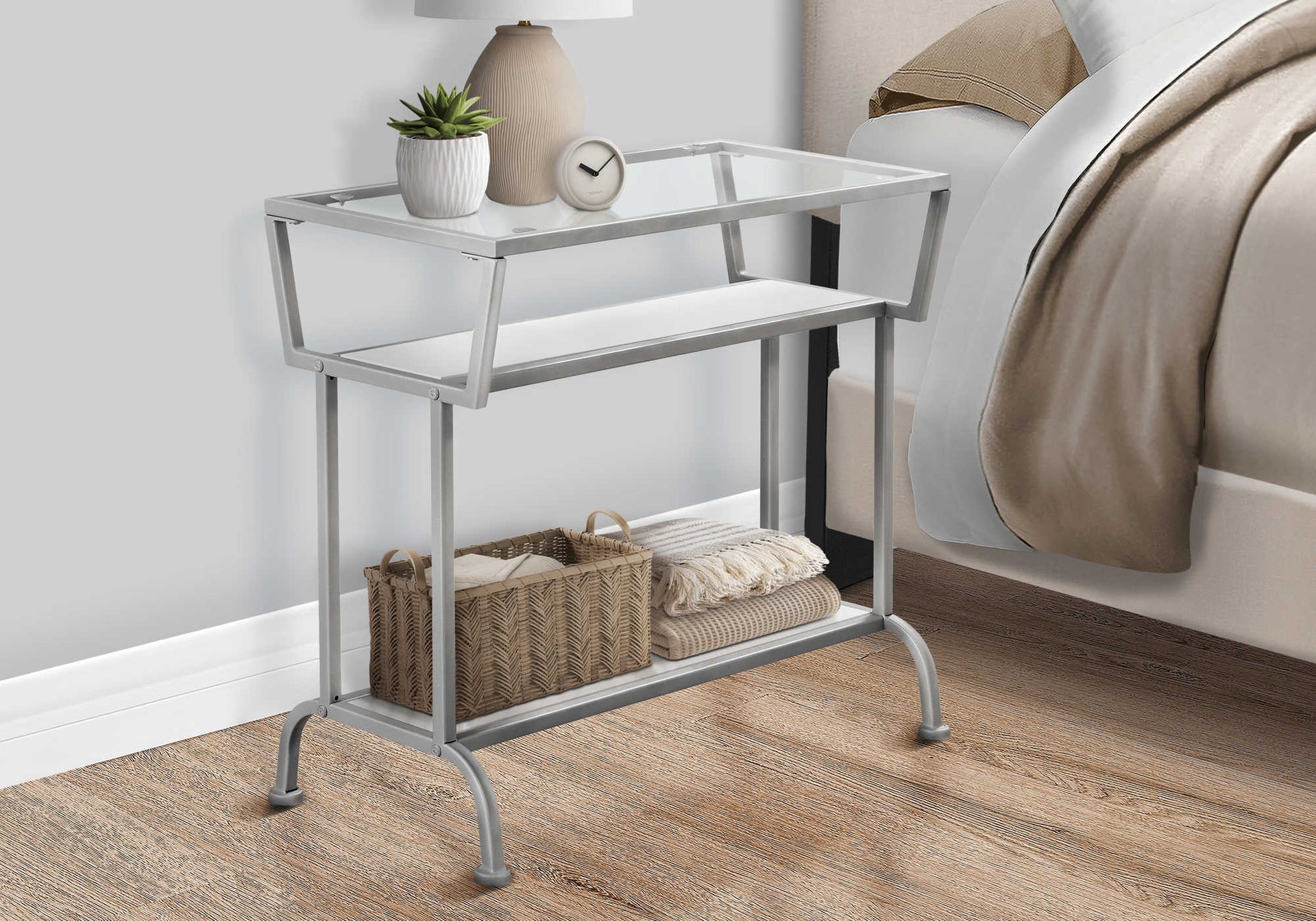 NIGHTSTAND - 22"H / WHITE / SILVER / TEMPERED GLASS