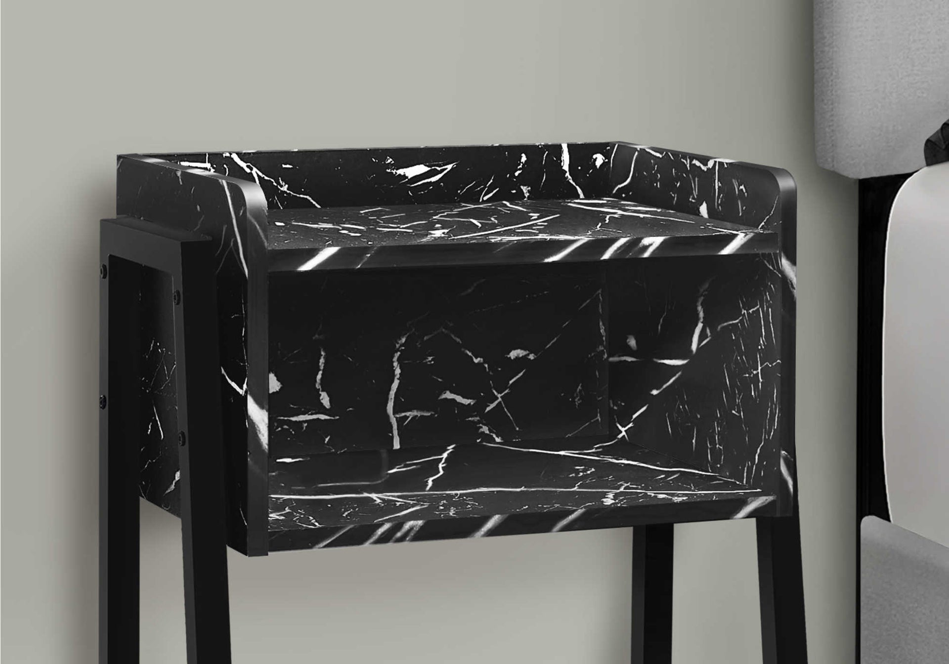 NIGHTSTAND - 23"H / BLACK MARBLE / BLACK METAL