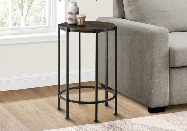 The perfect combination of style and functionality, this sleek and modern accent table brings fashionable style with a chic, dark oak laminate finish on the round table top and black metal legs. This trendy 24 inch high side table is not only a practical addition,...
