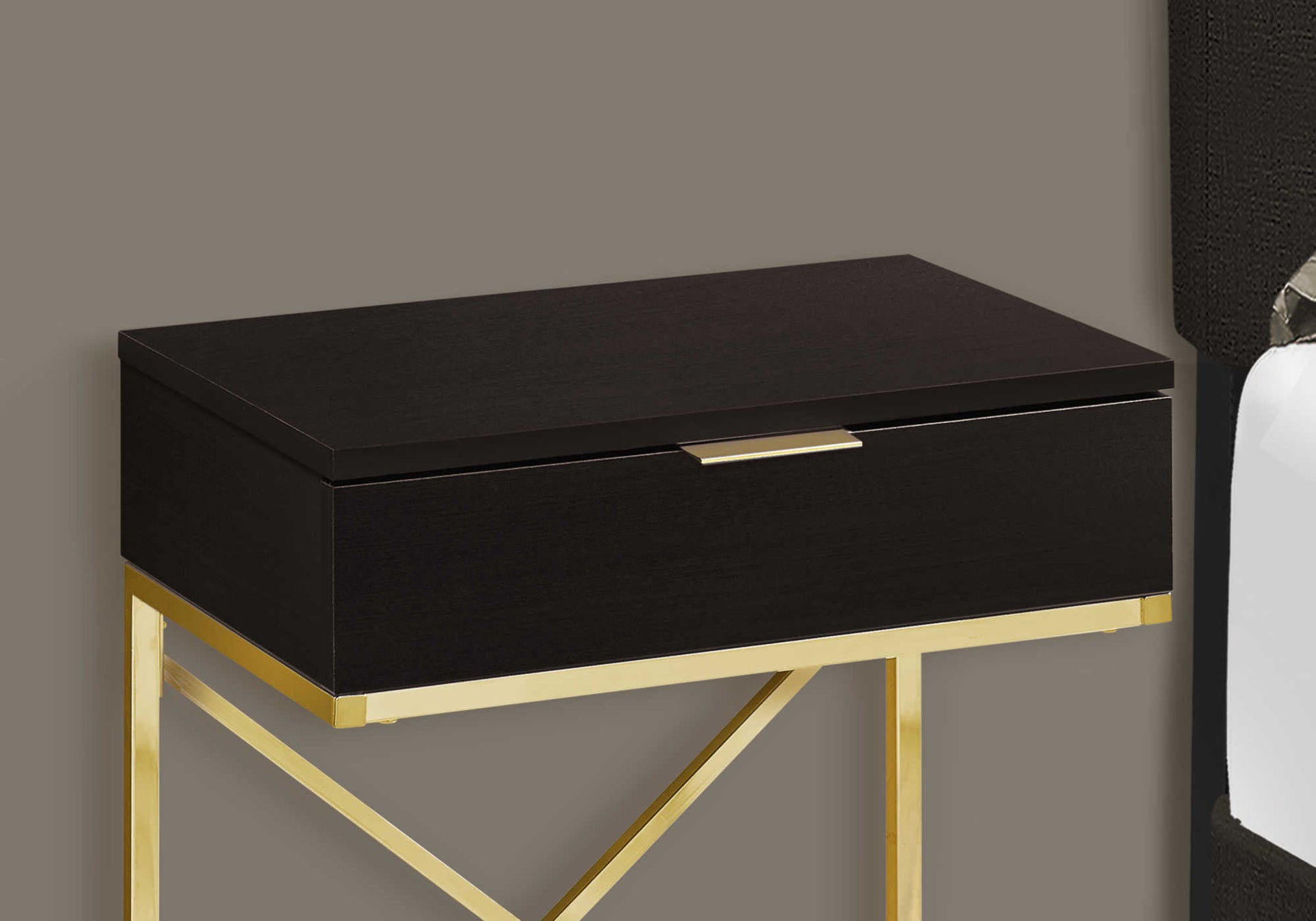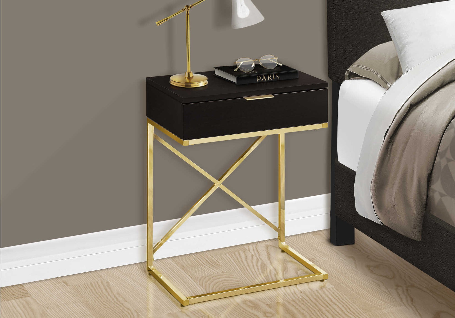 NIGHTSTAND - 24"H / ESPRESSO / GOLD METAL