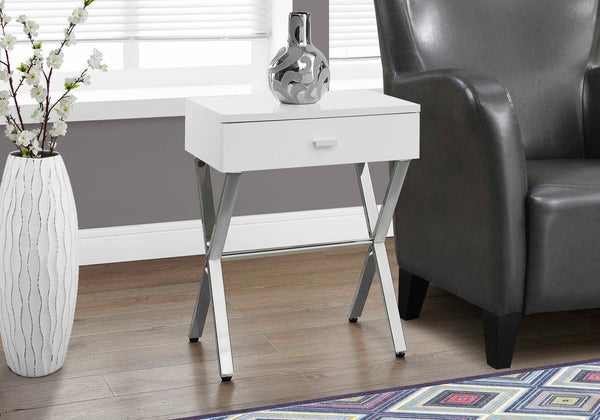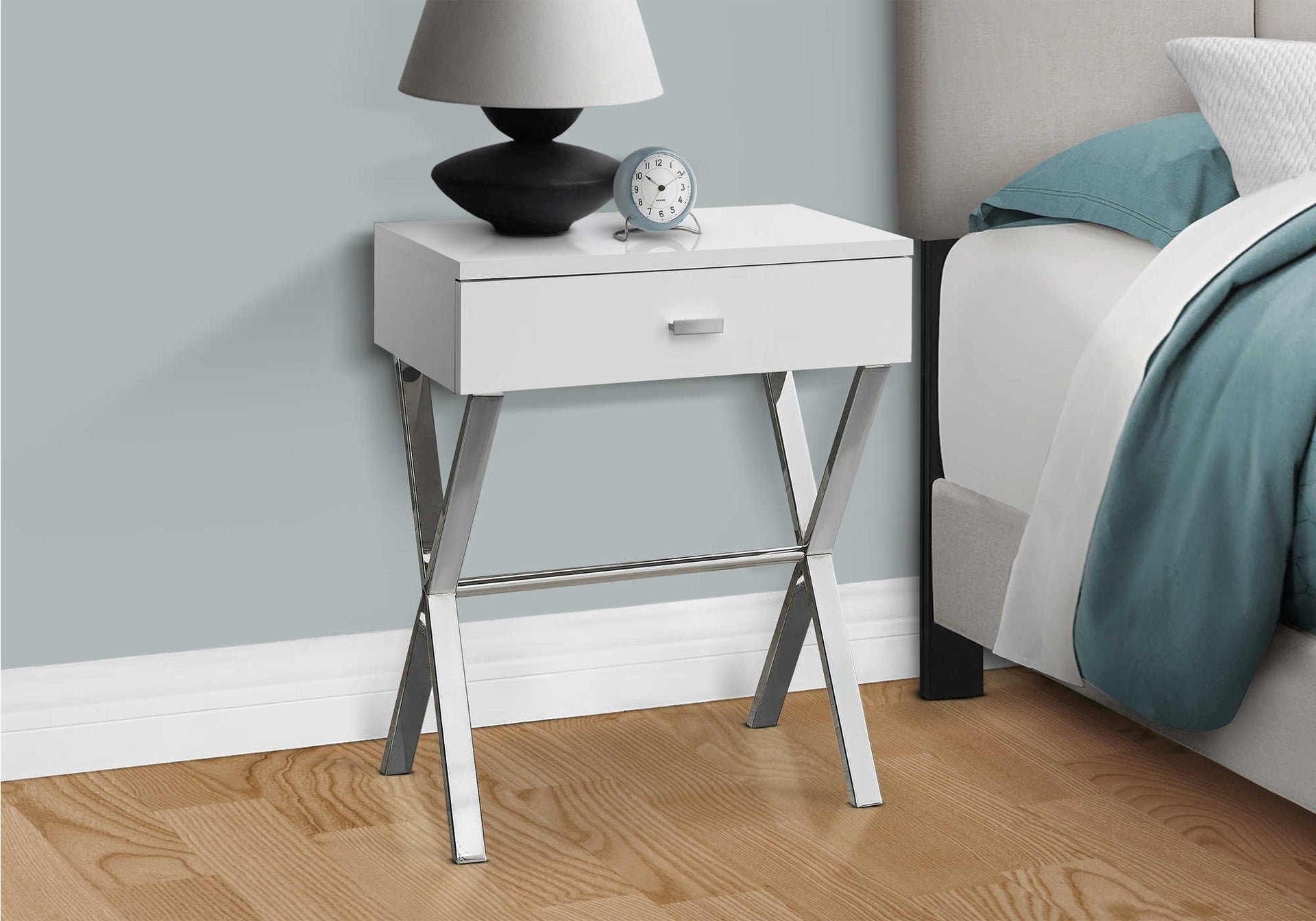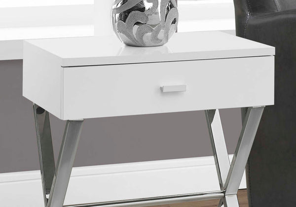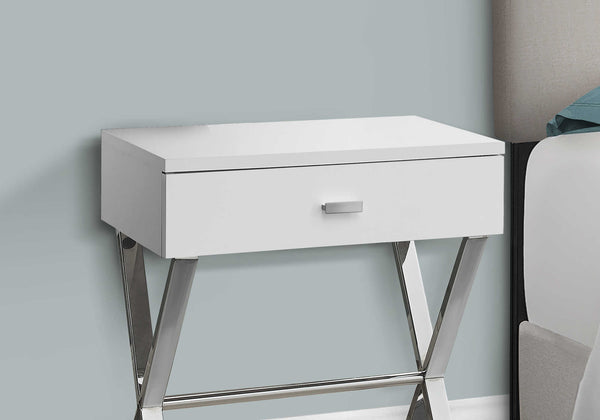 NIGHTSTAND - 24"H / GLOSSY WHITE / CHROME METAL