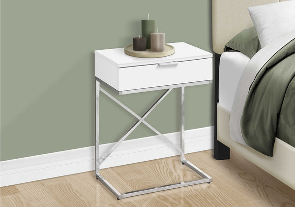 NIGHTSTAND - 24"H / GLOSSY WHITE / CHROME METAL