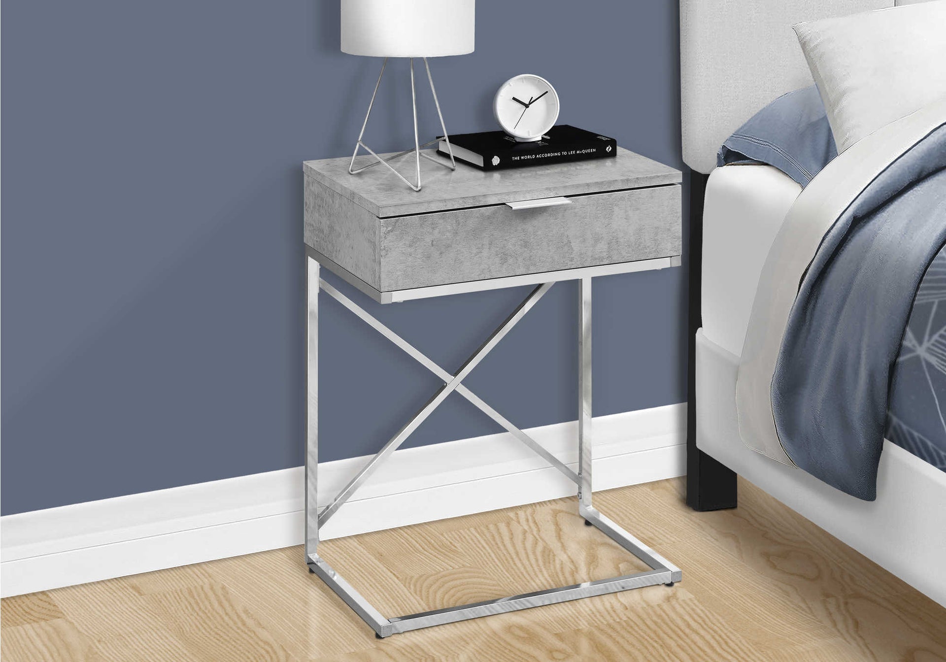 NIGHTSTAND - 24"H / GREY CEMENT / CHROME METAL