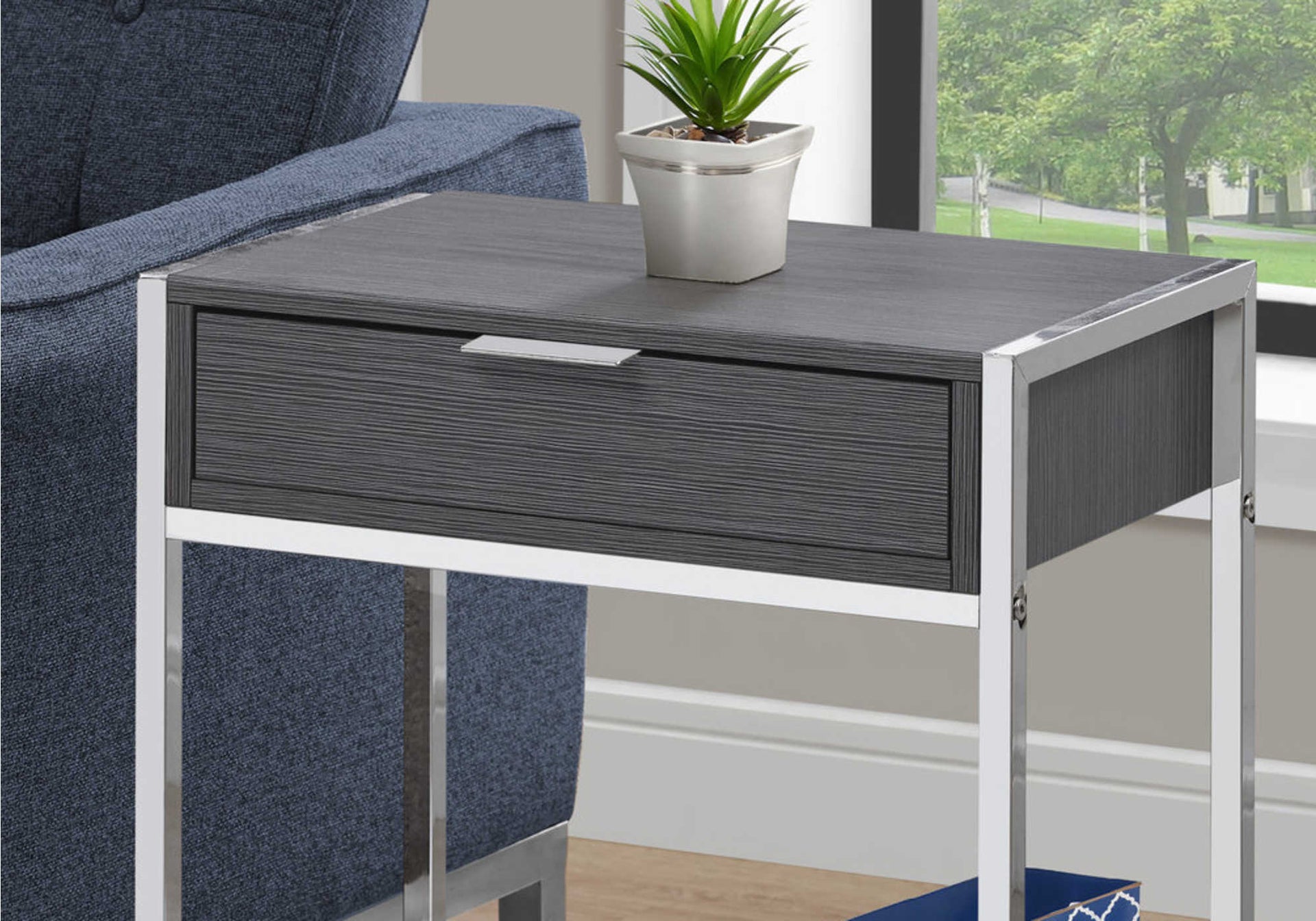 NIGHTSTAND - 24"H / GREY / CHROME METAL