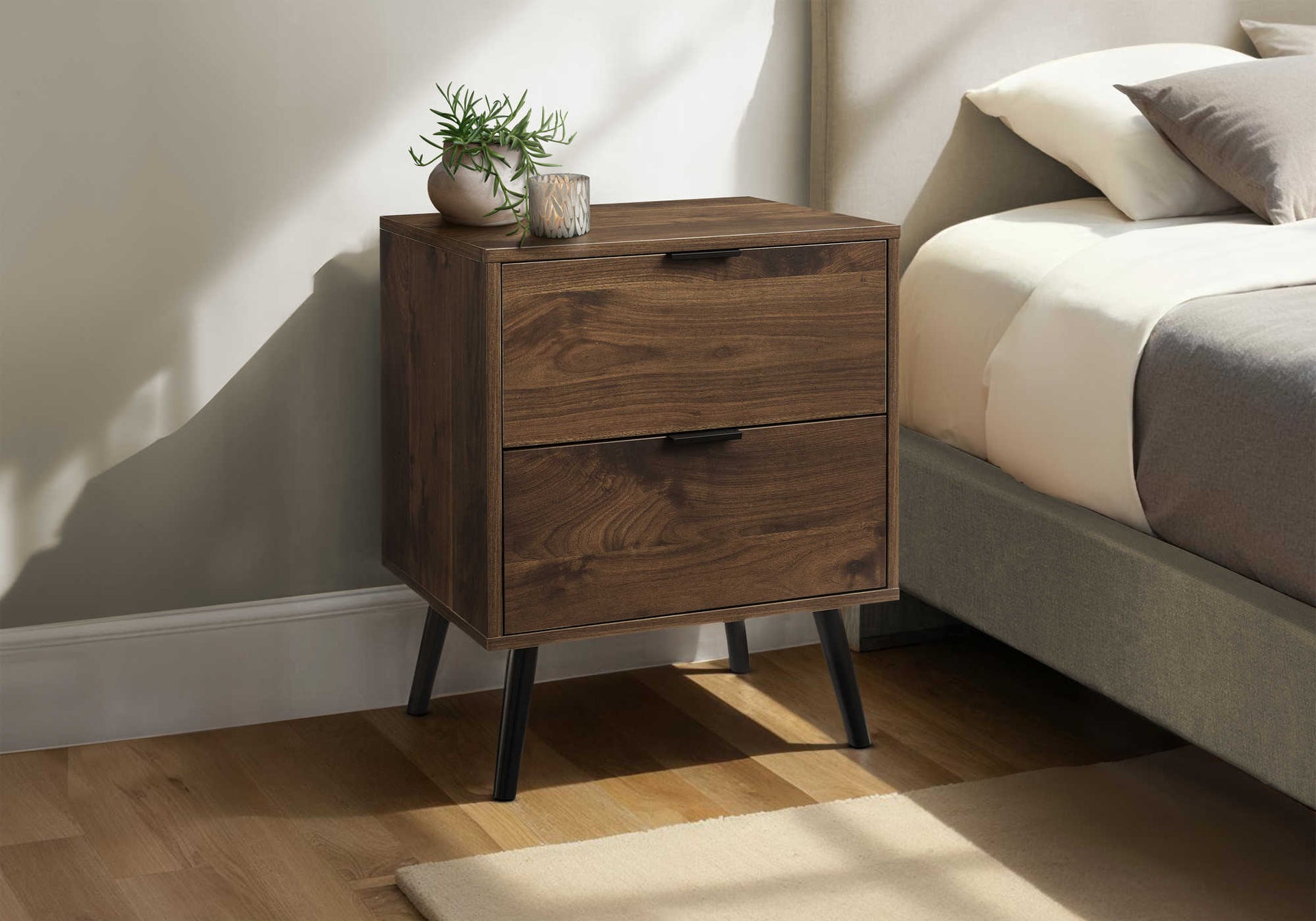NIGHTSTAND - 24"H / WALNUT END TABLE WITH 2 DRAWERS