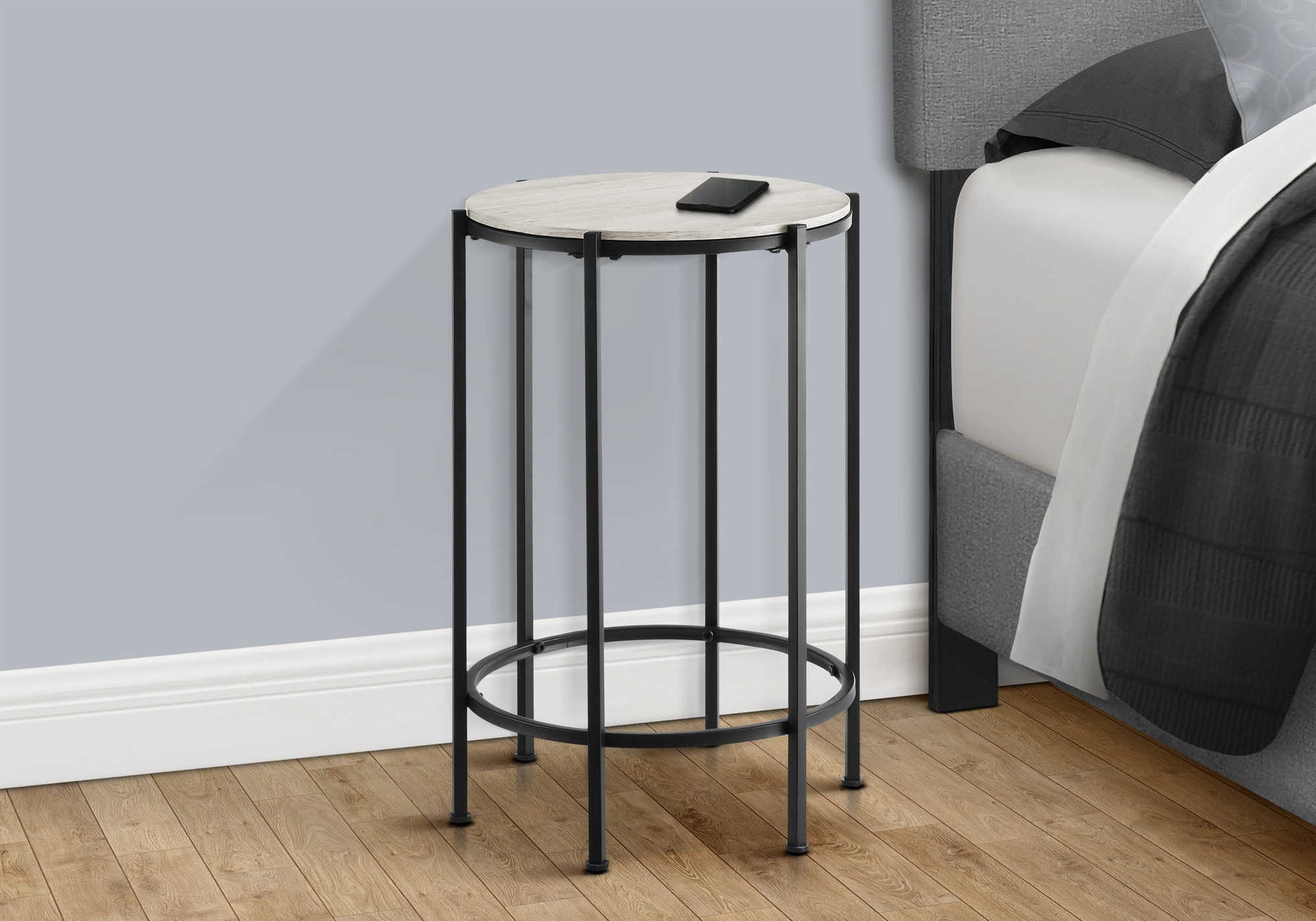 The perfect combination of style and functionality, this sleek and modern accent table brings fashionable style with a chic, washed oak laminate finish on the round table top and black metal legs. This trendy 24 inch high side table is not only a practical addition,...
