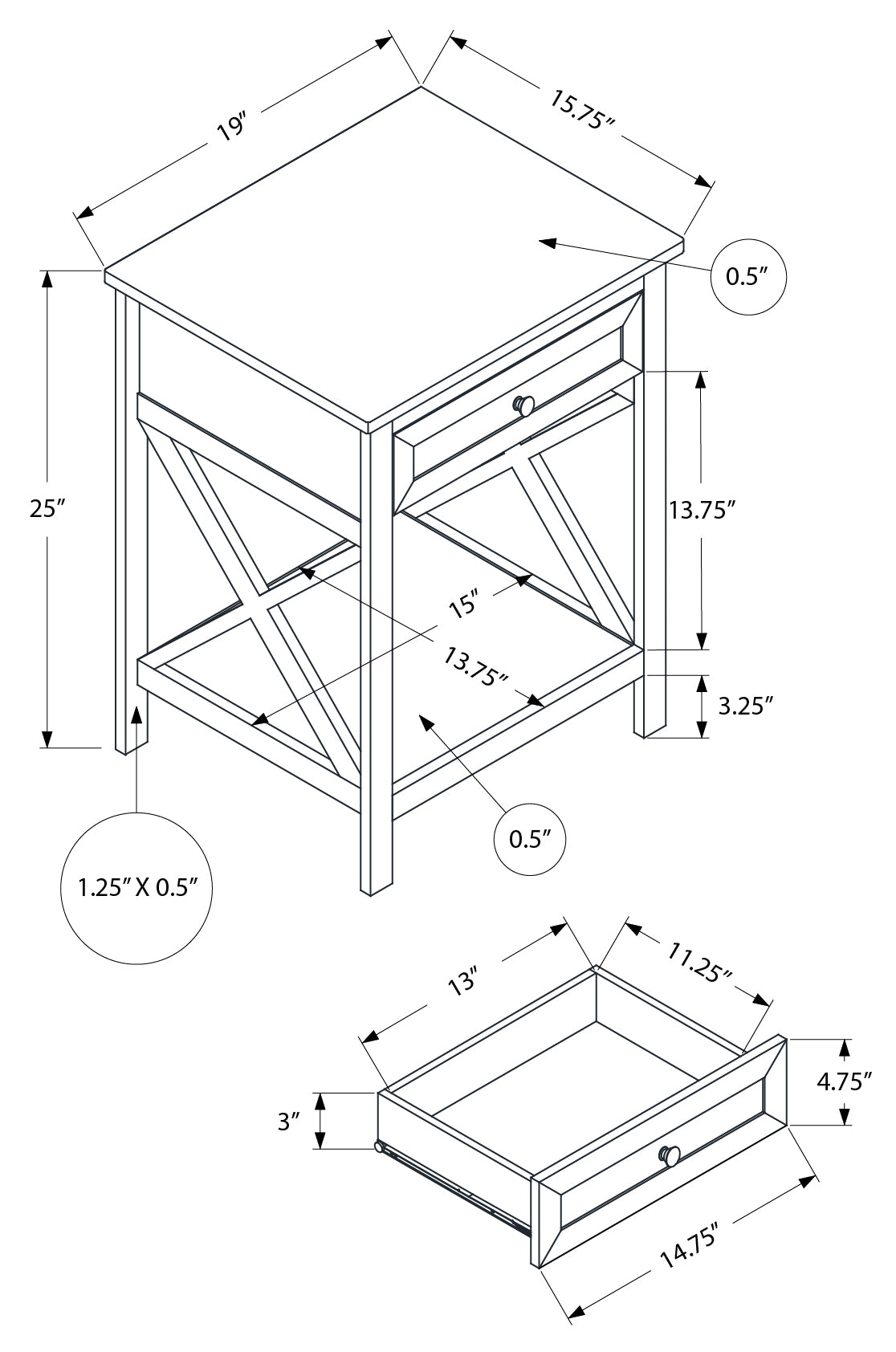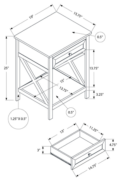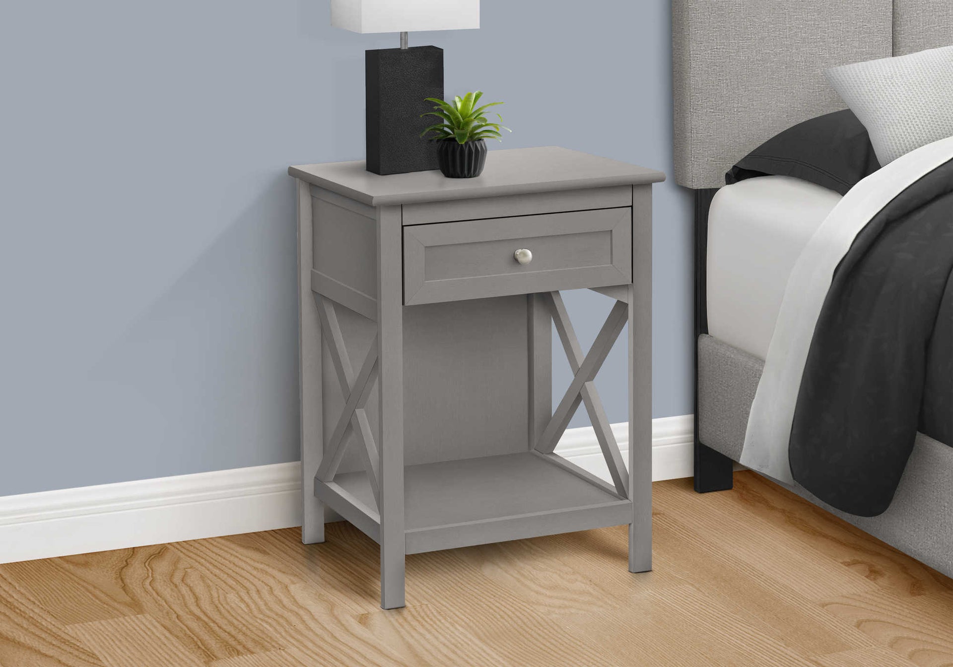 NIGHTSTAND - 25"H / ANTIQUE GREY VENEER END TABLE