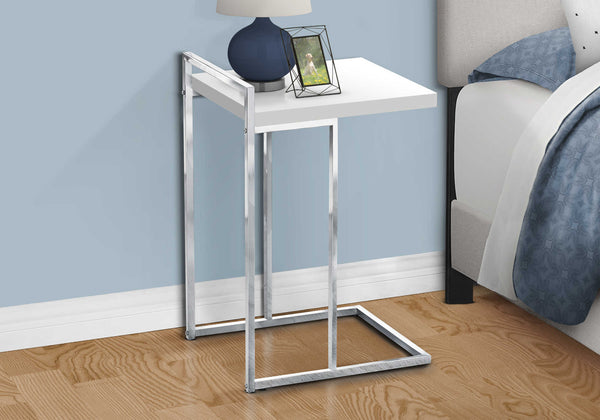 This C-shaped accent table brings something extra to the table. The thick-panel tabletop in a glossy white finish offers a wider surface than most standard-size C tables. More surface space gives you more opportunities to use this end table. It can multitask in a living...