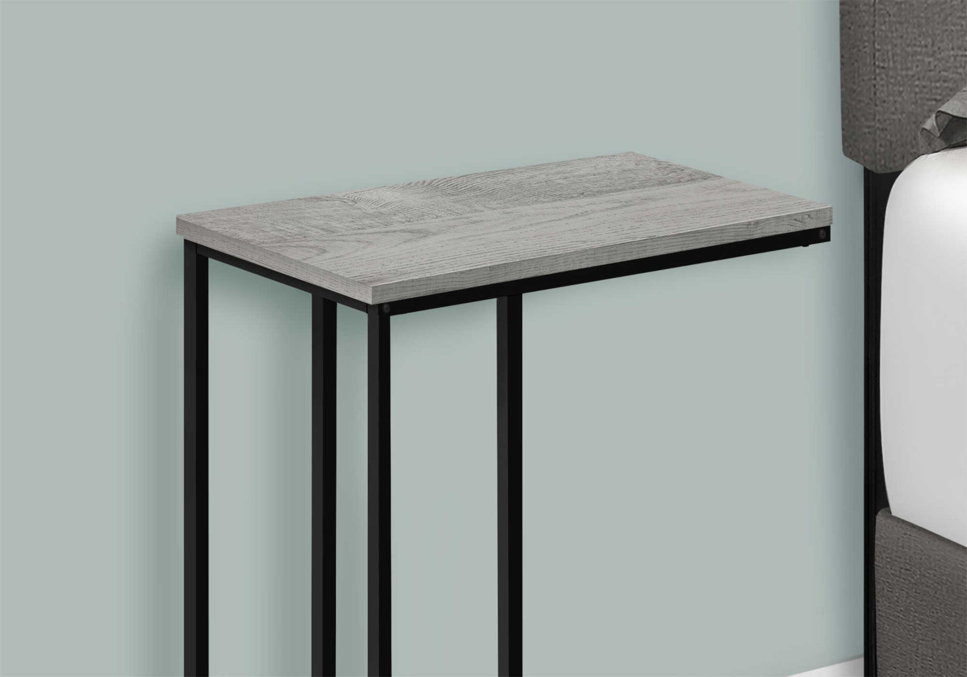 For a brilliant home upgrade, this grey wood-look C shape side table does the trick. Supported by an elegant black metal base, the end table is made for anything from snacks and drinks to your laptop, tablet and even decorative accents that complement the rest...