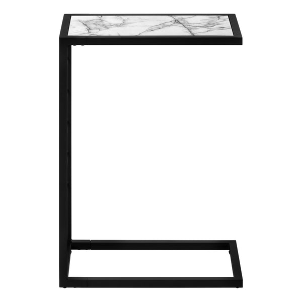Straight lines and subtle curves give this C-shaped accent table an elegant, contemporary look. The rectangular white marble-look tabletop is bordered by a black metal frame that extends down to the base. A wave pattern design on the frame adds a decorative touch. This versatile...