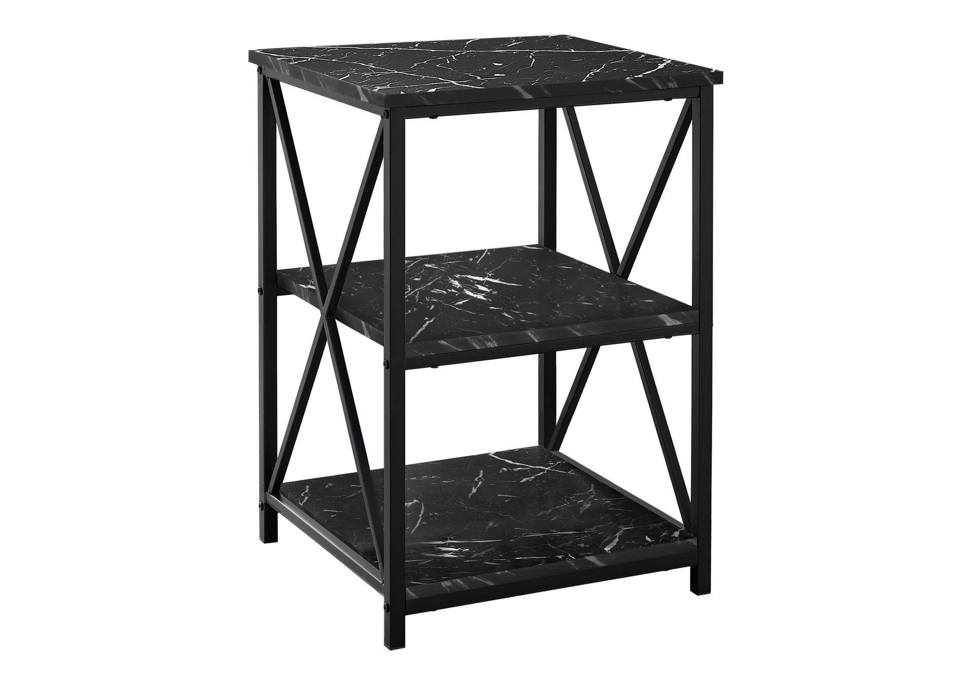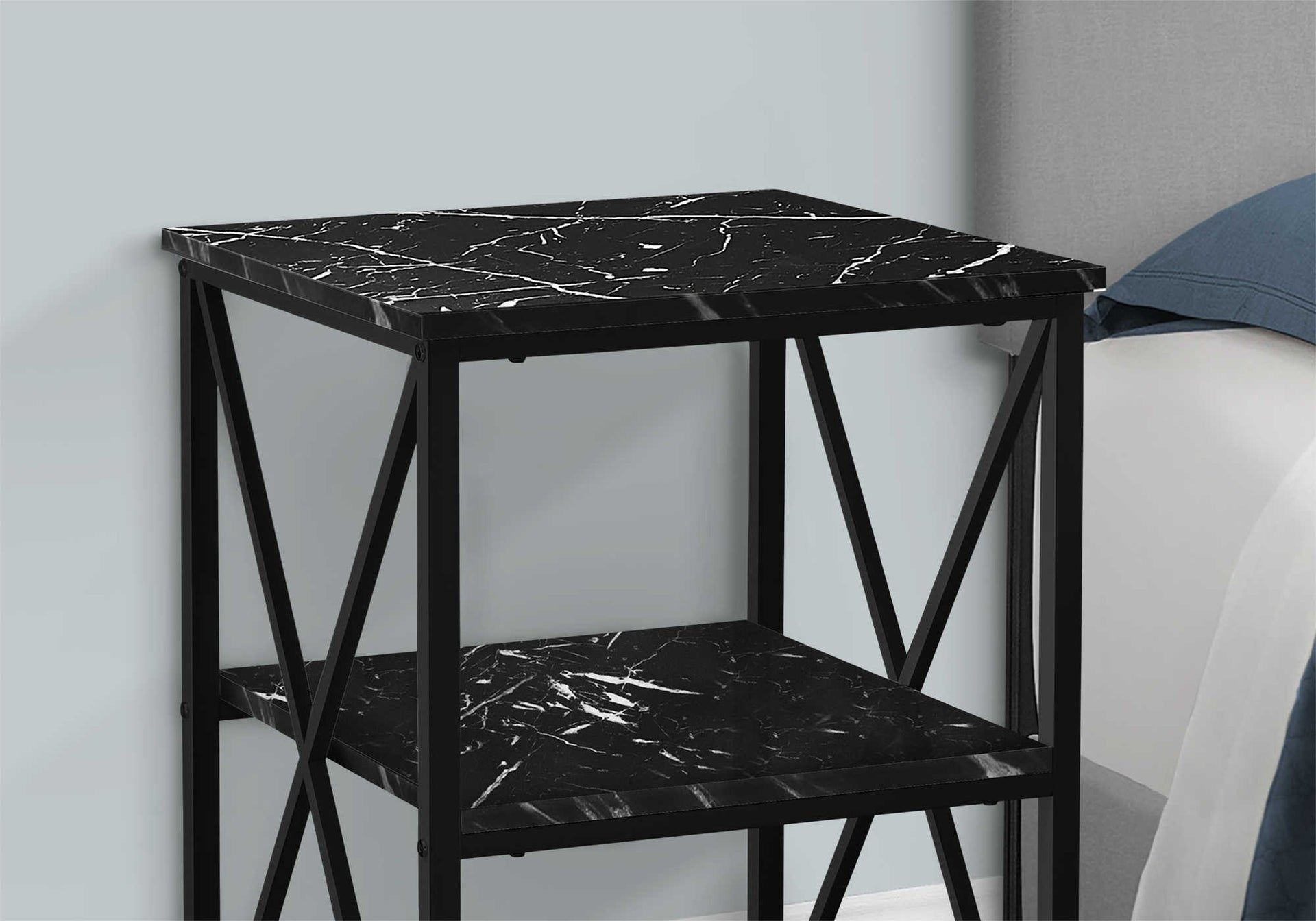 NIGHTSTAND - 26"H / BLACK MARBLE / BLACK METAL