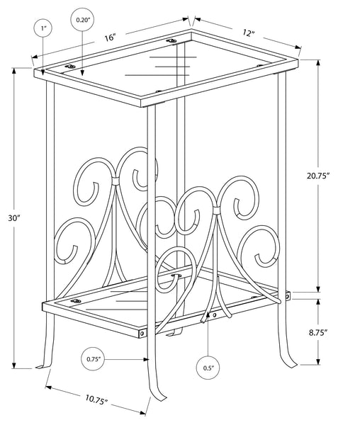 Decorative scrollwork and sleek silver metal scrollwork make for the perfect mix of traditional and contemporary styling. This practical end table features two tempered glass table tops, offering ample surface space for any decorative accents you choose. With just the right function and style, this...