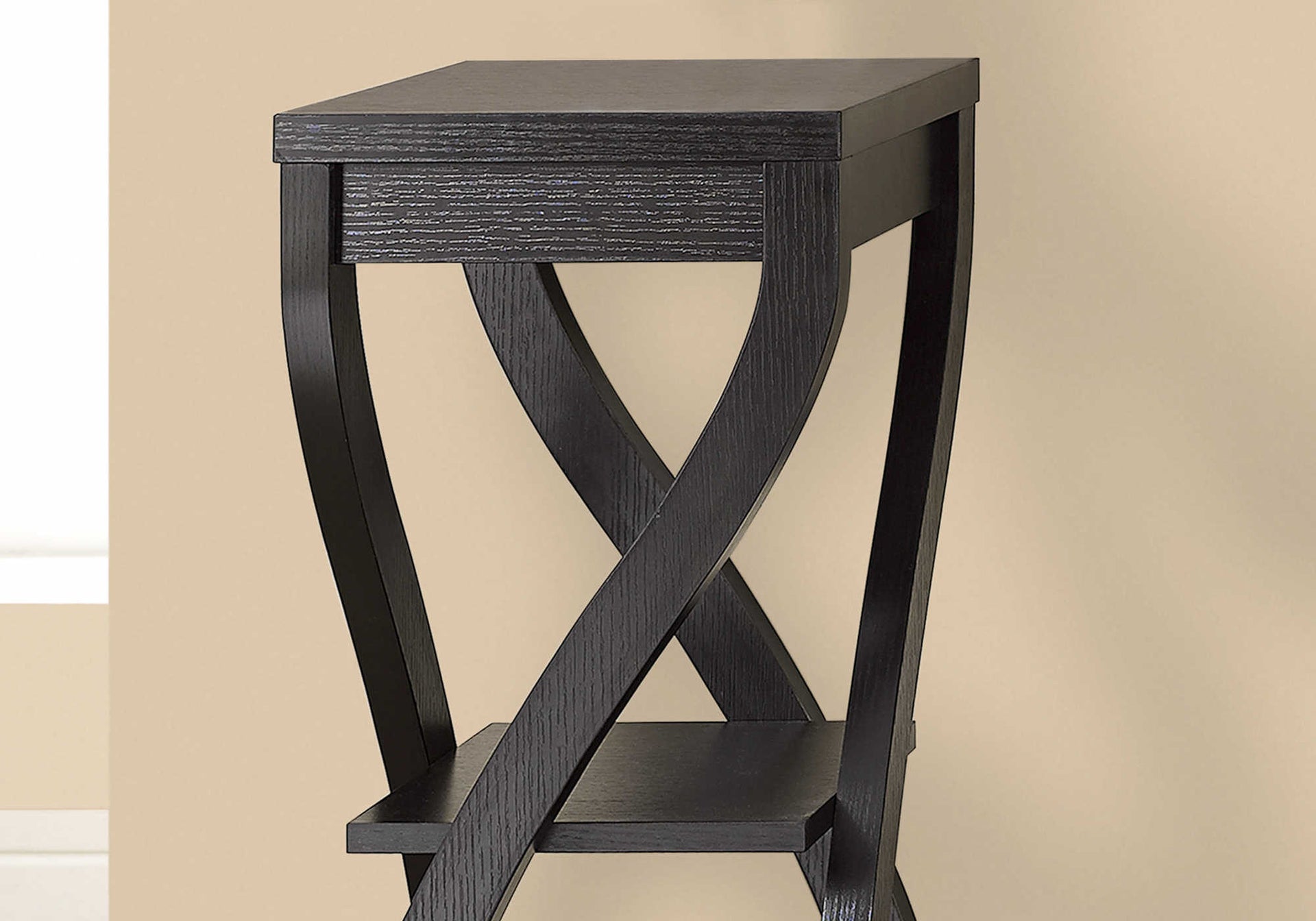 This contemporary accent table with curved legs offers a playful twist on displaying decorative items. The sturdy legs curve for a dynamic, twisting effect that will attract as much attention as the objects displayed on the table. Featuring a square tabletop and 2 shelves, its...