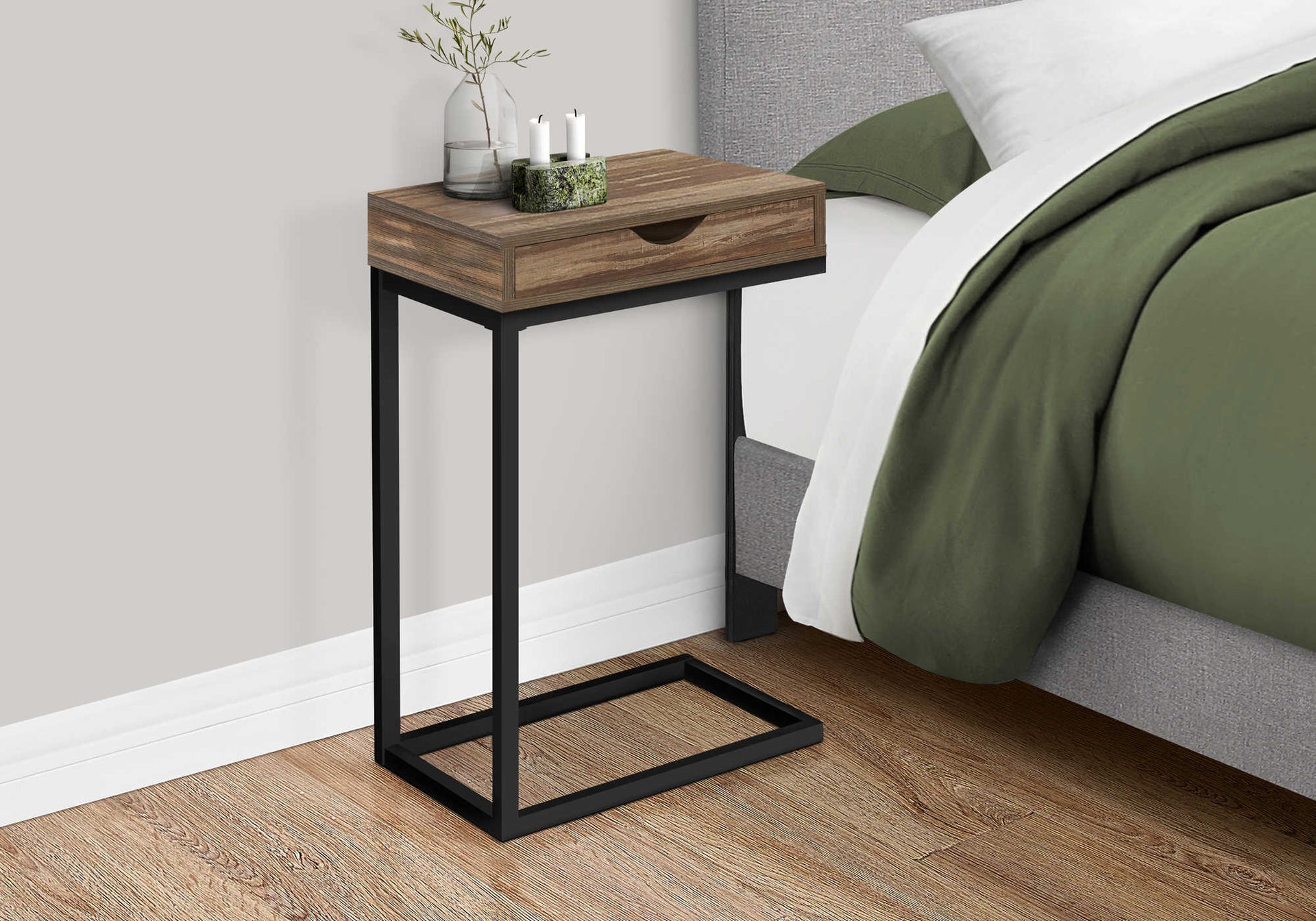 Reach your design goals in your living room, bedroom or lounge. Slide this C-shaped end table next to you, cozy up and watch your favorite movie. The light brown terracotta design features a spacious flat top to easily hold your...