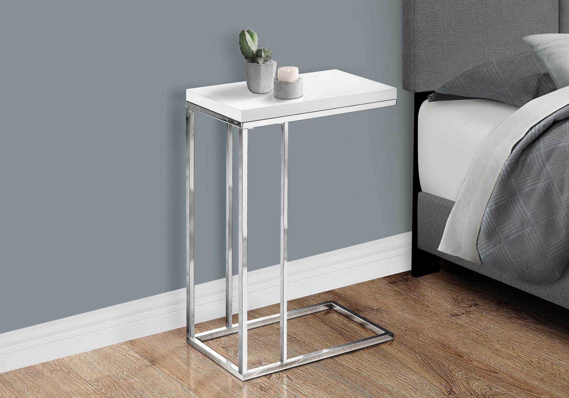 For a brilliant home upgrade, this glossy white C shape side table does the trick. Supported by an elegant chrome metal base, the end table is made for anything from snacks and drinks to your laptop, tablet and even decorative accents that complement the rest...