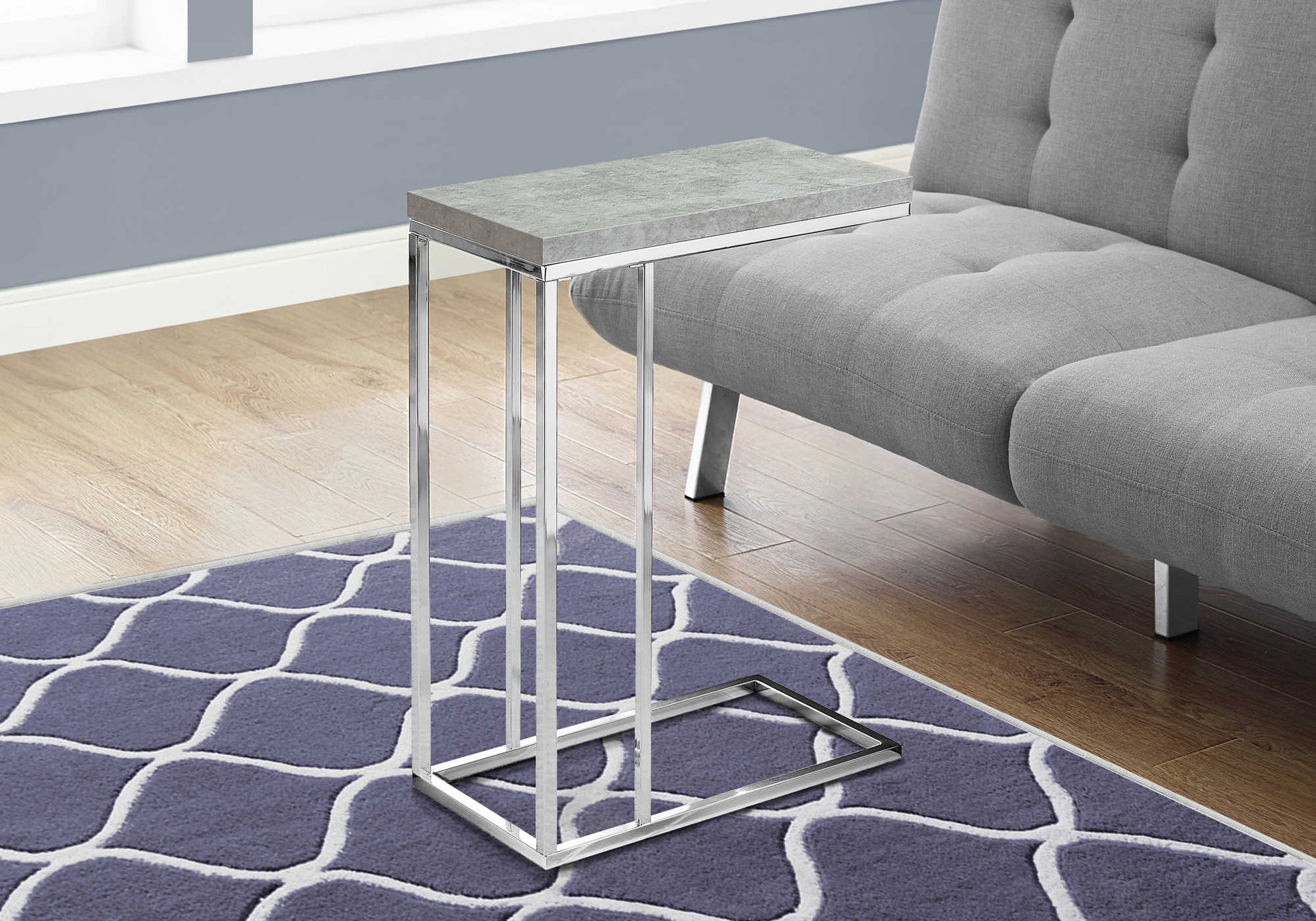 For a brilliant home upgrade, this cement look C shape side table does the trick. Supported by an elegant chrome metal base, the end table is made for anything from snacks and drinks to your laptop, tablet and even decorative accents that complement the rest...