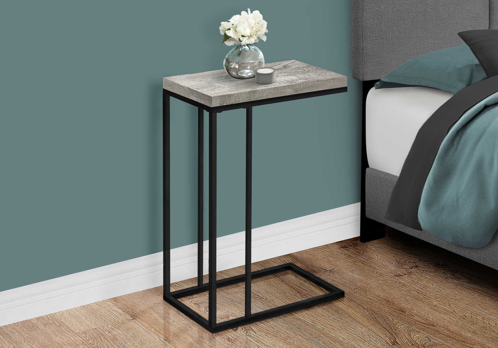 For a brilliant home upgrade, this grey reclaimed wood look C shape side table does the trick. Supported by an elegant black metal base, the end table is made for anything from snacks and drinks to your laptop, tablet and even decorative accents that complement...