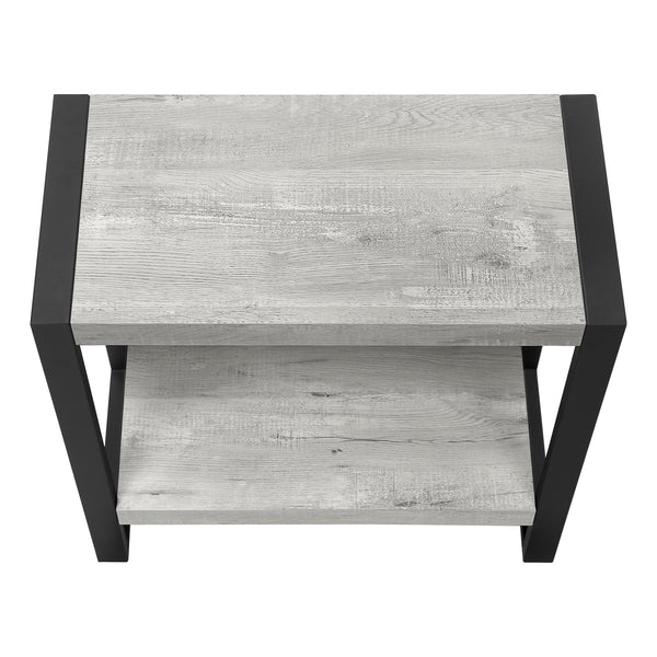 Industrial-farmhouse style combines modern metal with a rustic wood finish to create a warm, inviting look. This two-tier rectangular accent table embodies that popular style. The tabletop and bottom shelf are finished in a grey reclaimed-wood look with naturalistic color variations and a subtle wood-grain...