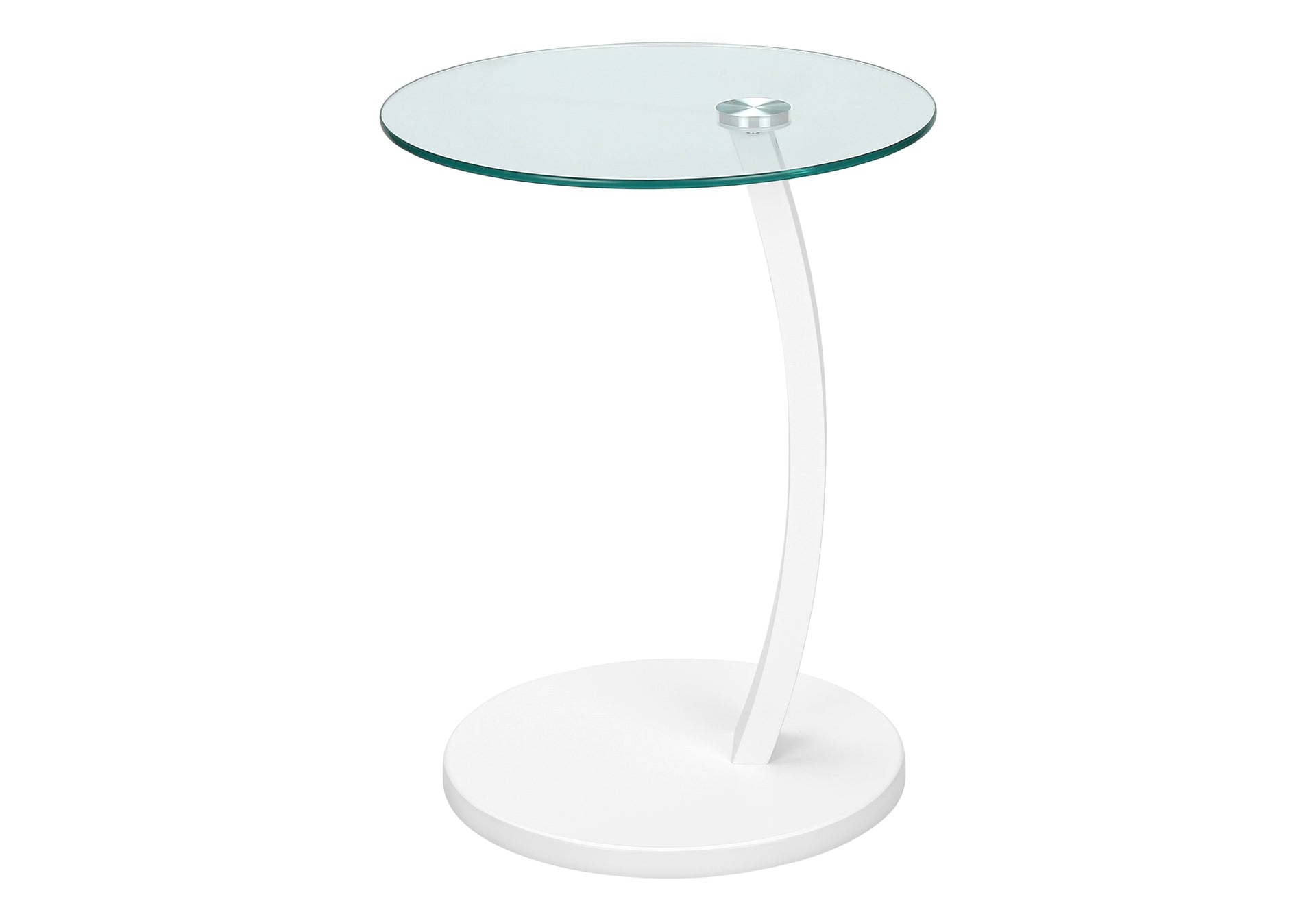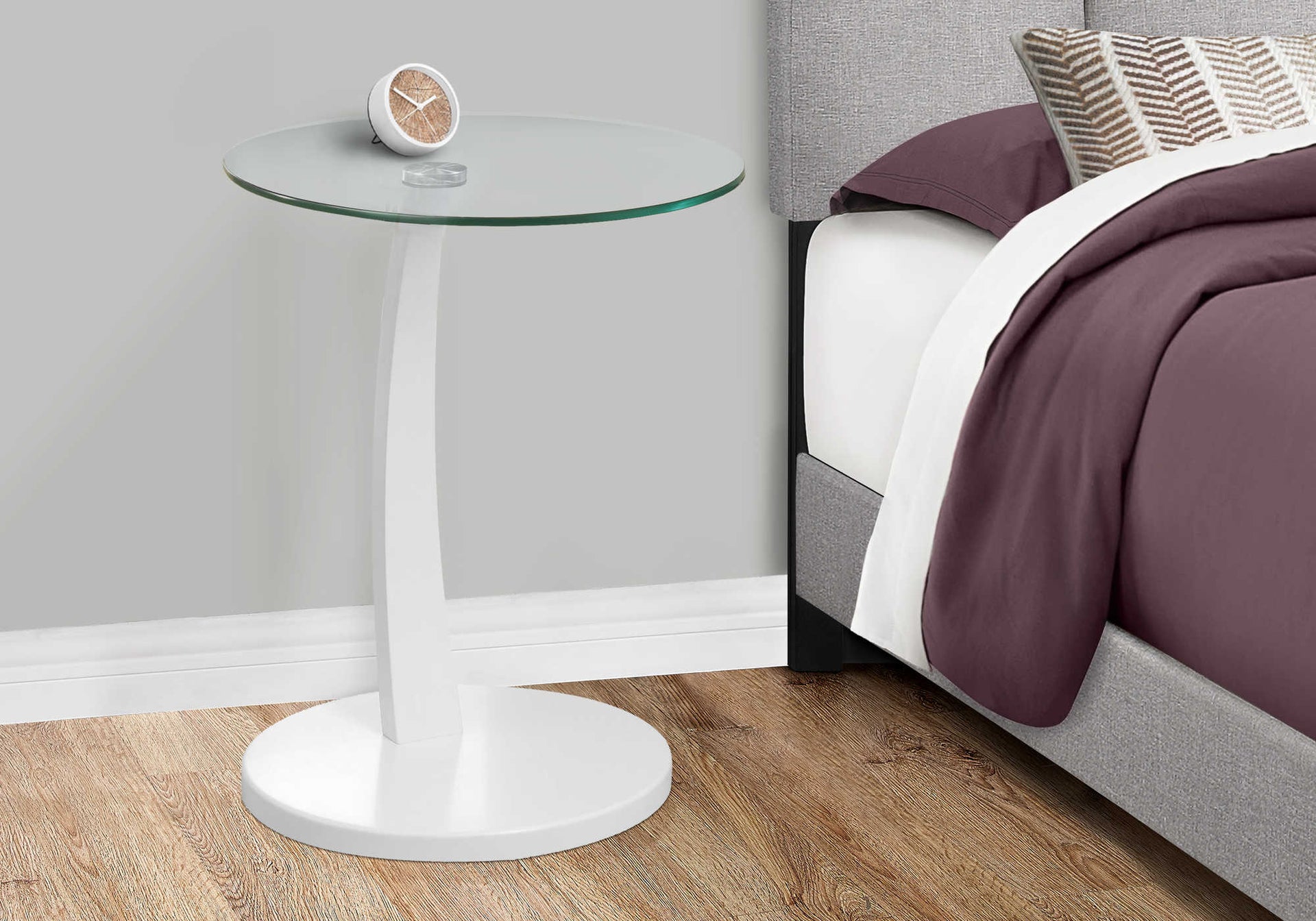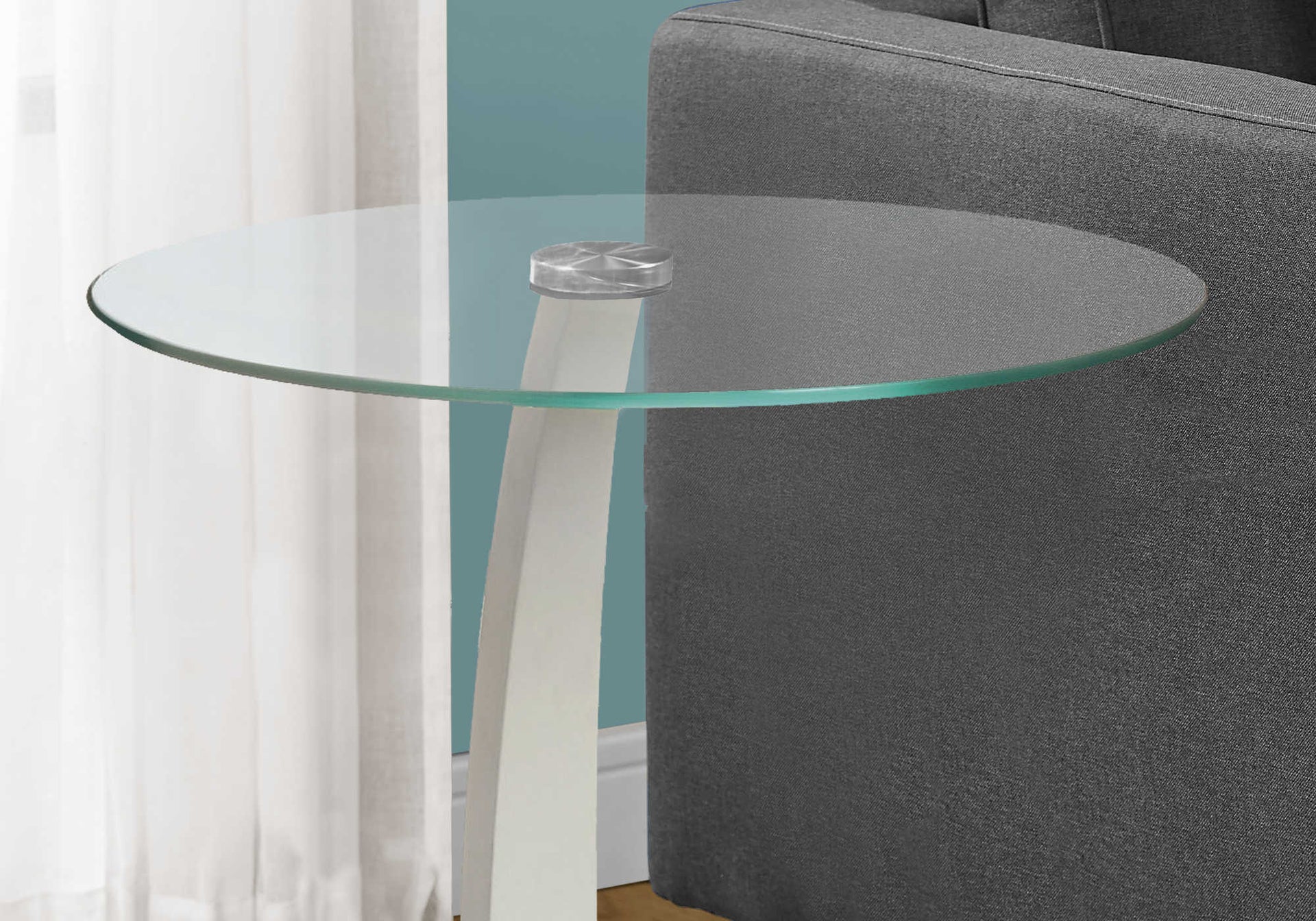 This contemporary style white bentwood accent table is a convenient solution for placing snacks or drinks near your sofa or chair. A circular white base and stand offer sturdy support, while the thick clear round tempered glass top has plenty of surface space for putting...