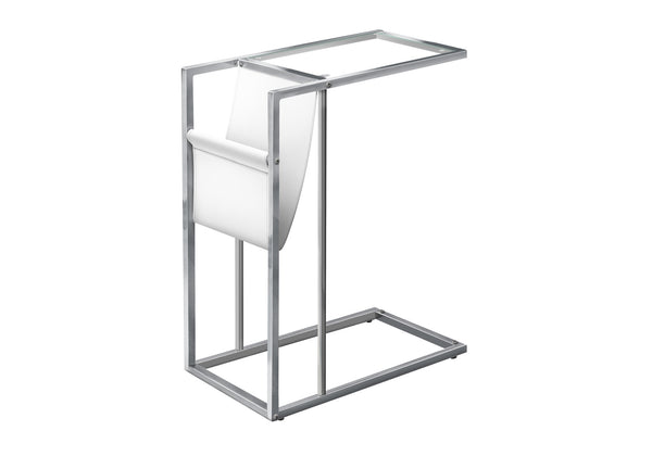 NIGHTSTAND - WHITE / CHROME METAL WITH A MAGAZINE RACK