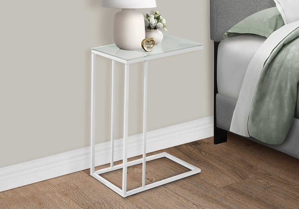 A perfectly tapered accent table that fits independently with any furniture in your home, this rectangular table features a frosted tempered glass surface perfect for you snacks, drinks, meals or tablet. The white metal base easily slips under a sofa or chair and provides sturdy...