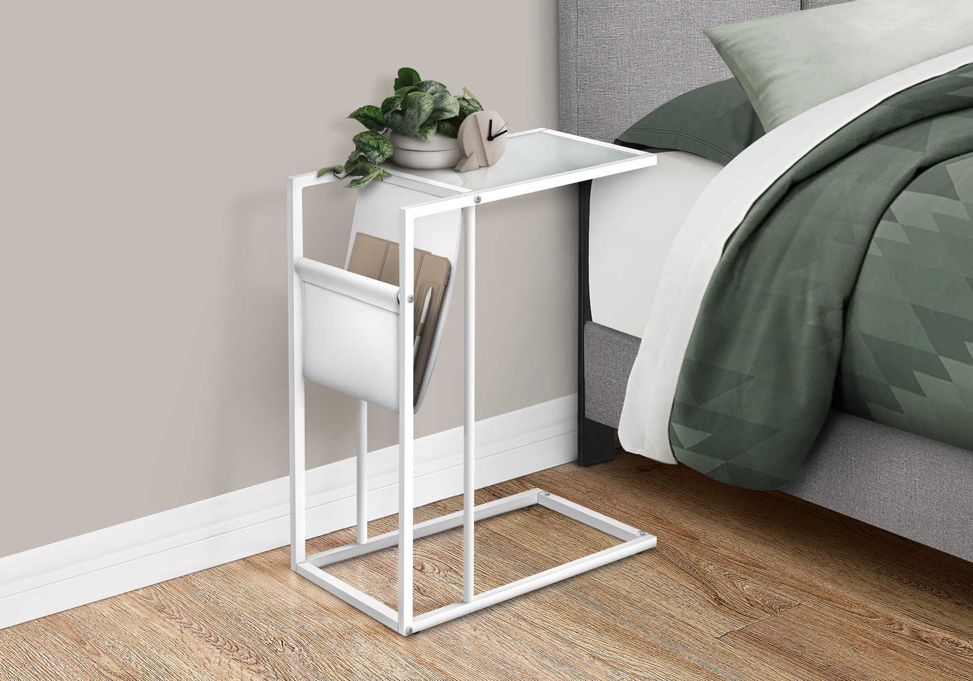 NIGHTSTAND - WHITE / WHITE METAL WITH A MAGAZINE RACK