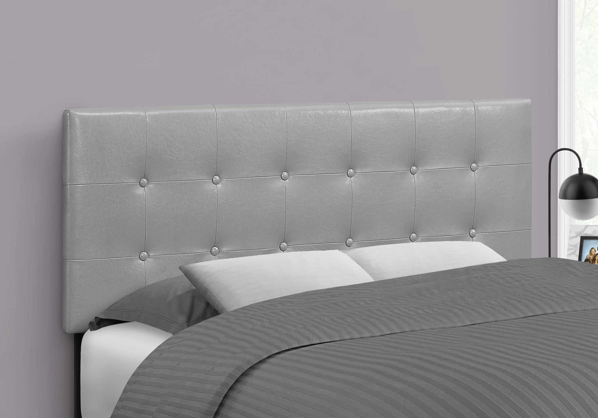 BED - FULL SIZE / GREY LEATHER-LOOK HEADBOARD ONLY