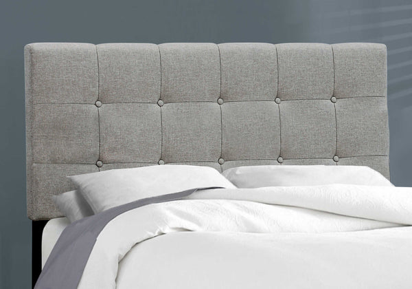 Create a striking look in your bedroom with this low profile platform bed frame fitted with a comfortable grey linen look fabric backrest and base. Including bold wooden slats for a solid construction including durable side rails and block style black plastic legs for increased...