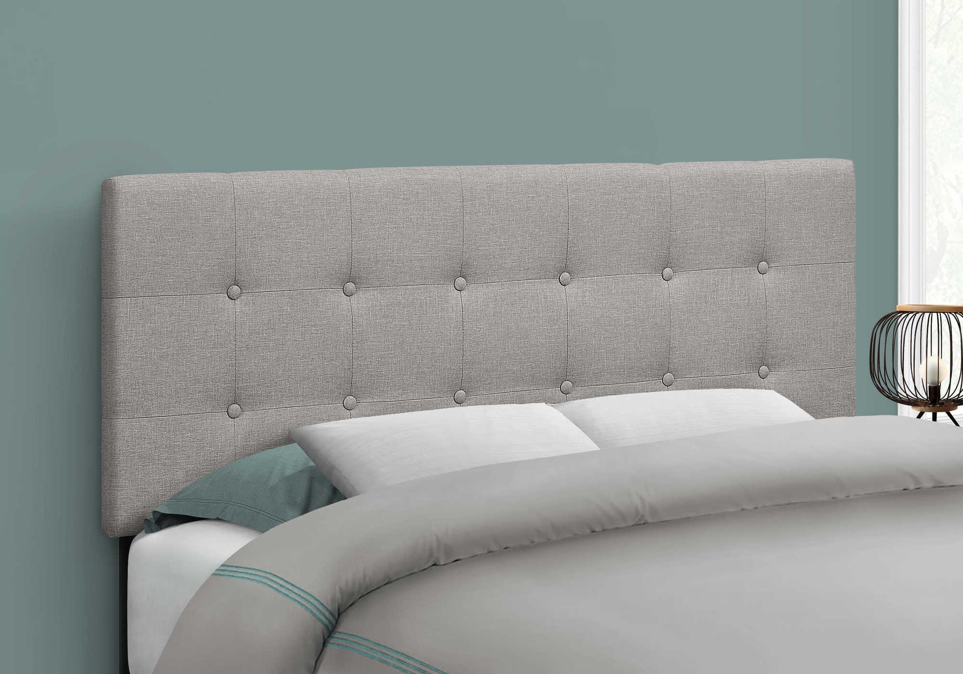 BED - FULL SIZE / GREY LINEN HEADBOARD ONLY