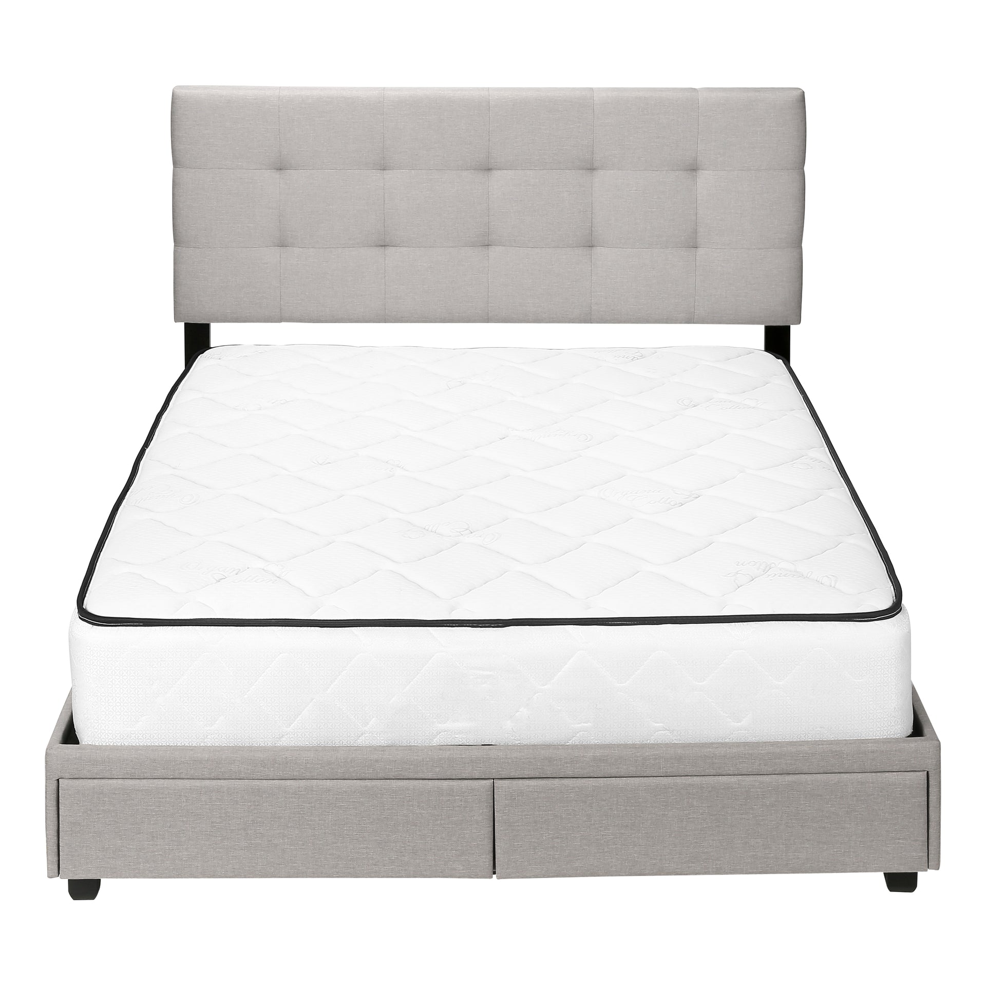 Comfort and convenience come together in this upholstered platform bed with 2 storage drawers. A grey linen-look fabric covers the bed frame and the tufted headboard, giving the bed a soft, comfortable feel all around. For a clean, modern look, the storage drawers are built...