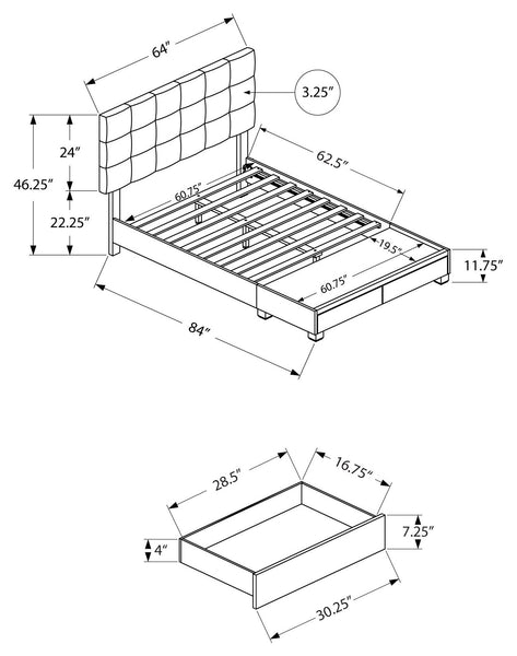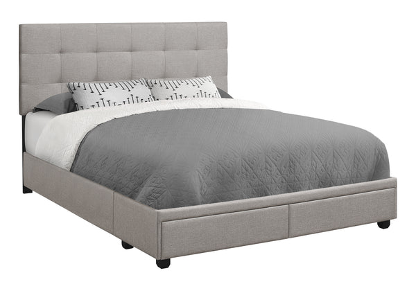 BED - QUEEN SIZE / GREY LINEN WITH 2 STORAGE DRAWERS