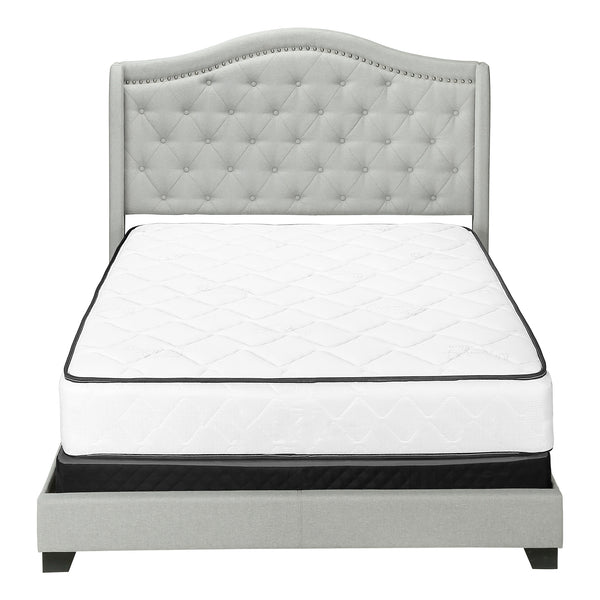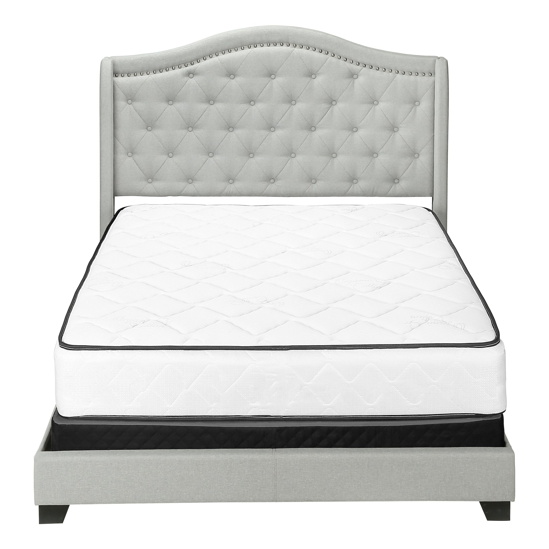 Bring a luxurious feel to your bedroom with the updated classic styling of this queen-size, upholstered bedframe with a wingback headboard. Covered in an elegant grey linen-look fabric over foam cushioning on all sides, this bed is embellished with button...