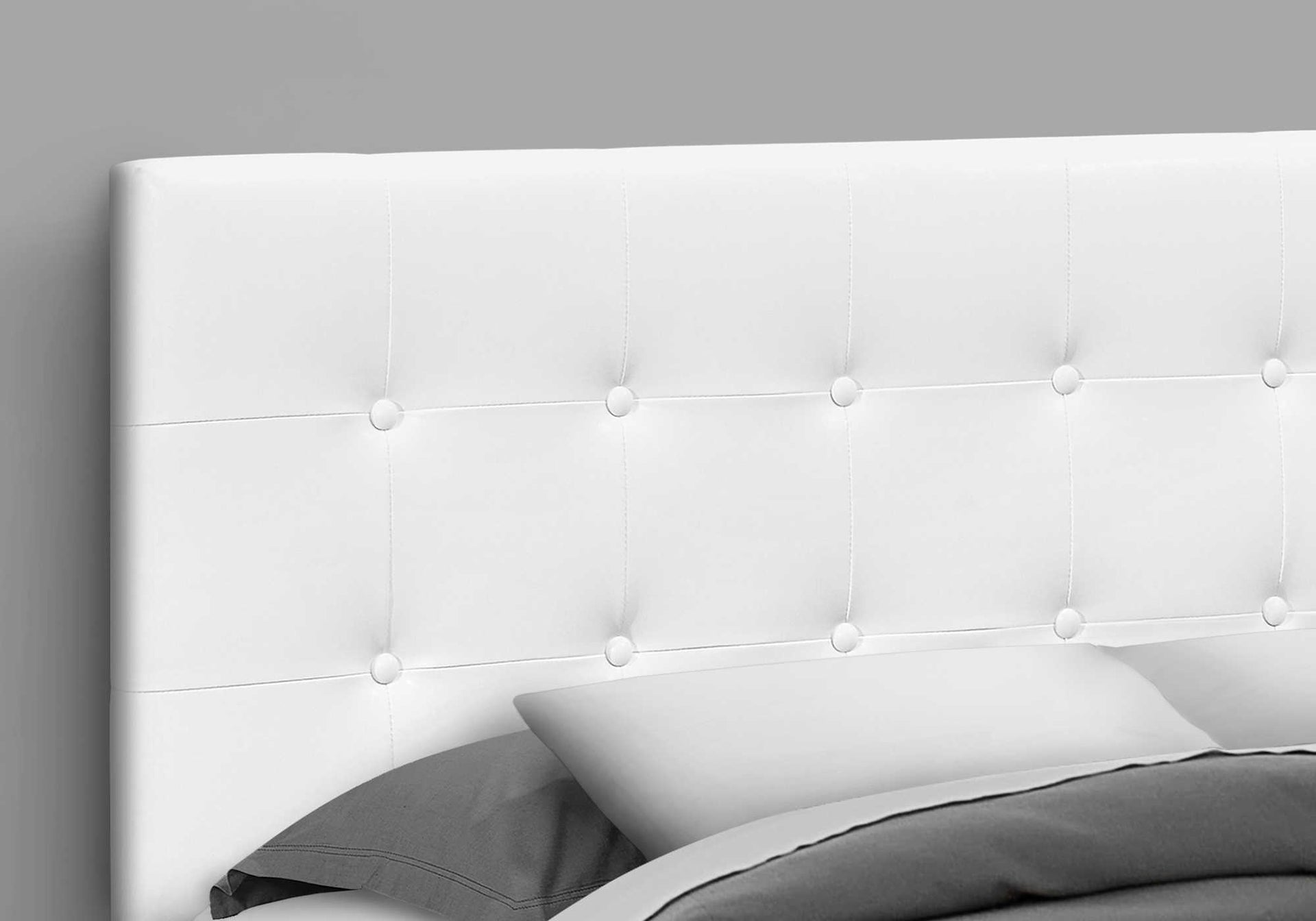 Bring sophisticated style to any bedroom with this upholstered headboard panel in a white leather-look fabric. Button tufted with extra padding for an ultra-soft feel, you will drift off to sleep in ultimate comfort. Streamlined and compact, this headboard adjusts easily to your desired height...
