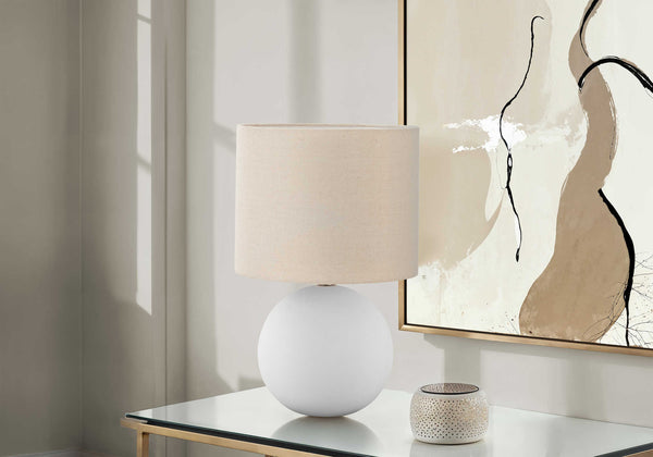 Buy Ceramic Table Lamp in Canada This stylish and fashionable globe shaped 16"h table lamp with a cream ceramic base and topped with a softly contrasting cream fabric drum shade is the perfect accent to brighten any room. Featuring an easy on/off switch on the...