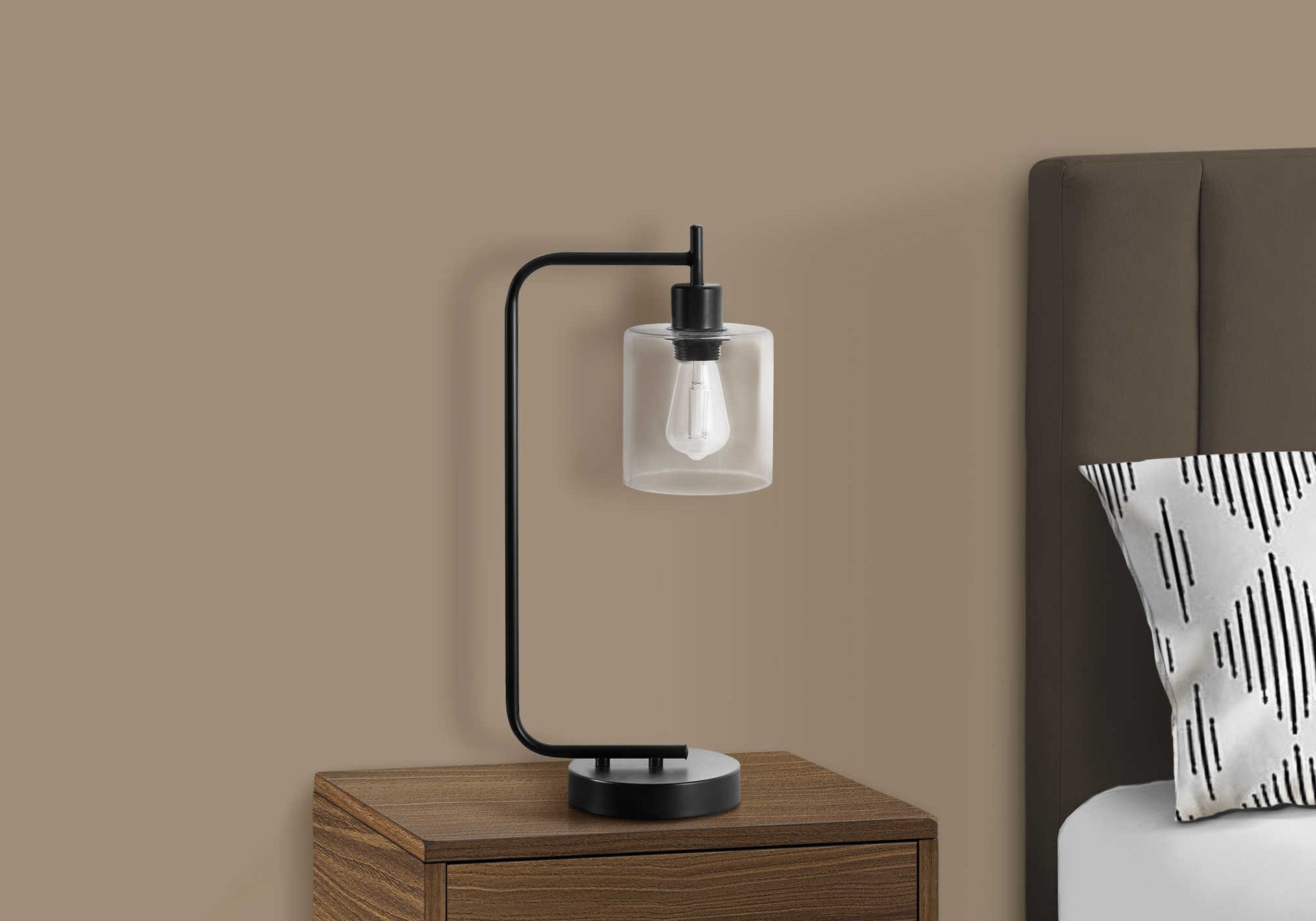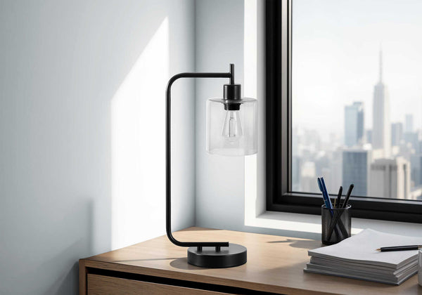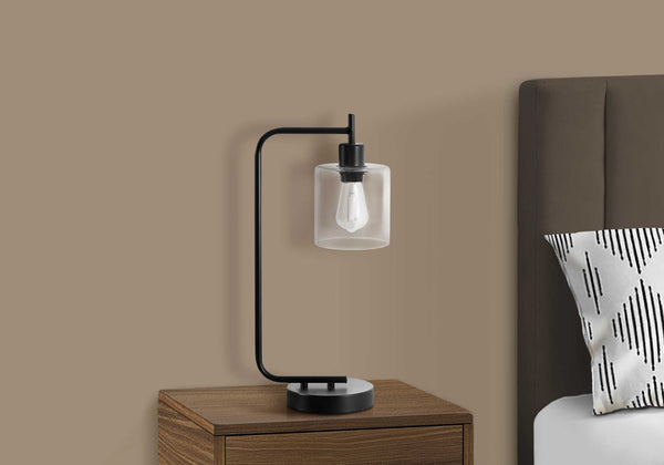 LIGHTING - 20"H TABLE LAMP BLACK METAL/GLASS SHADE/USB