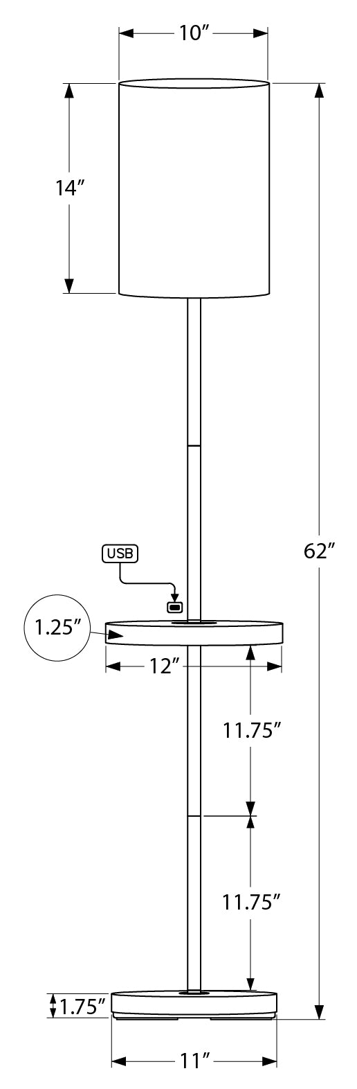 Buy 67 Inch Black Floor Lamp With USB Elevate your space with the ultimate combination of style and functionality with our 67"h floor lamp in black metal with an ivory linen fabric shade. The handy built-in shelf in a dark...